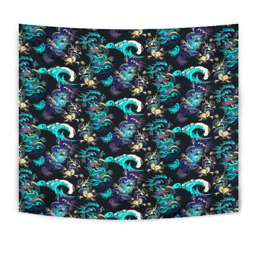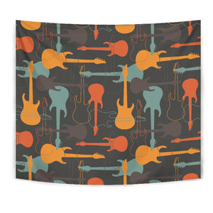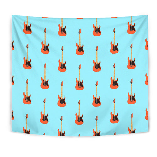 Electric Guitar Pattern Light Blue Background Wall Tapestry