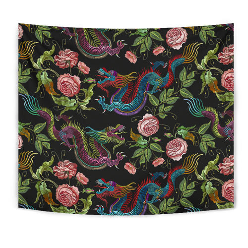 Dragonfly Butterfly Plants Insect Flower Vintage Style Pattern Wall Tapestry
