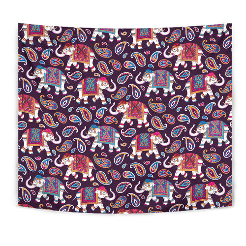 Elephant Indian Style Ornament Pattern Wall Tapestry