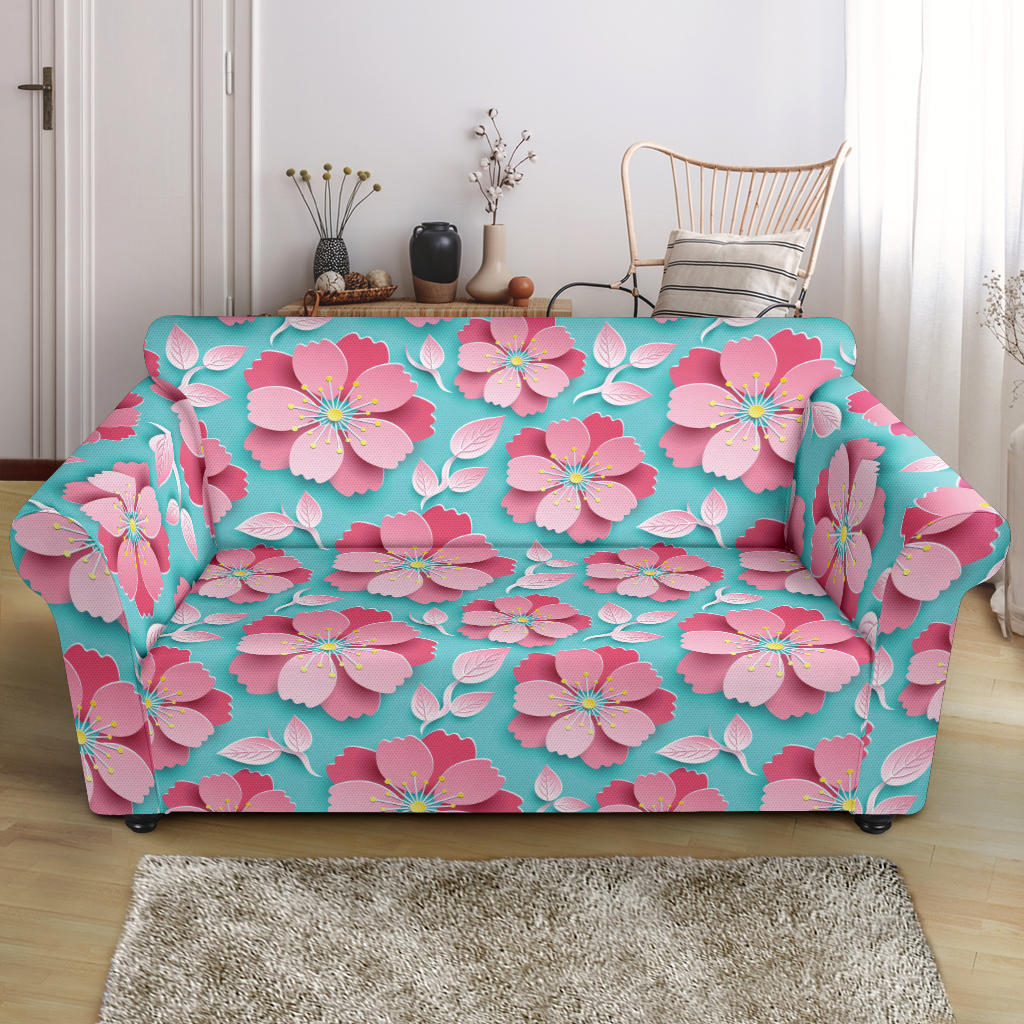 3D Sakura Cherry Blossom Pattern Loveseat Couch Slipcover