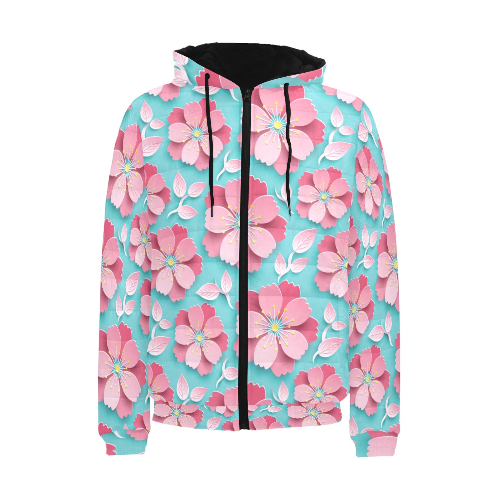 3D sakura cherry blossom pattern Men's Padded Hooded Jacket