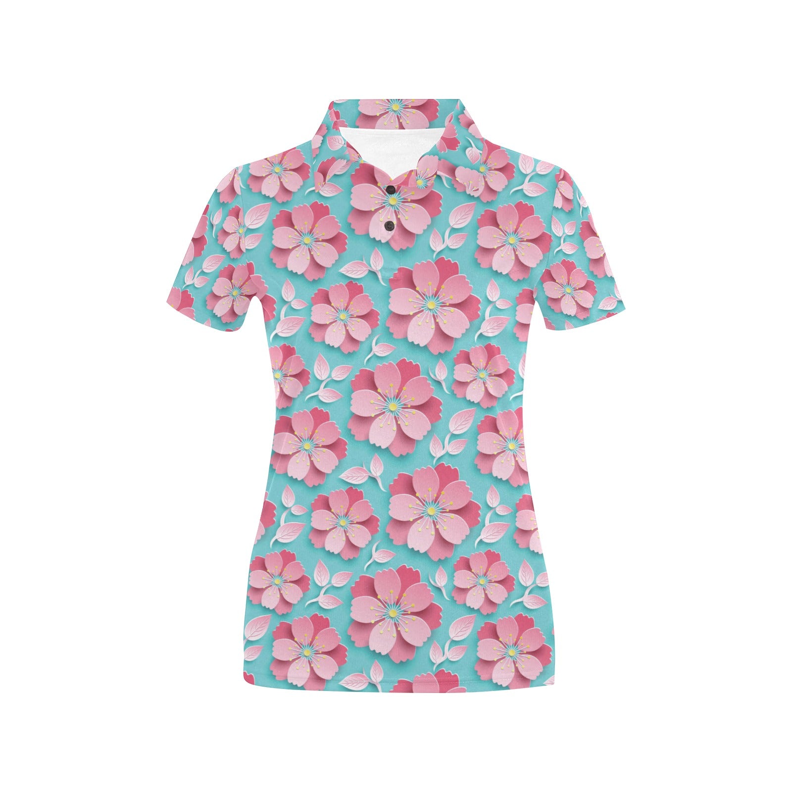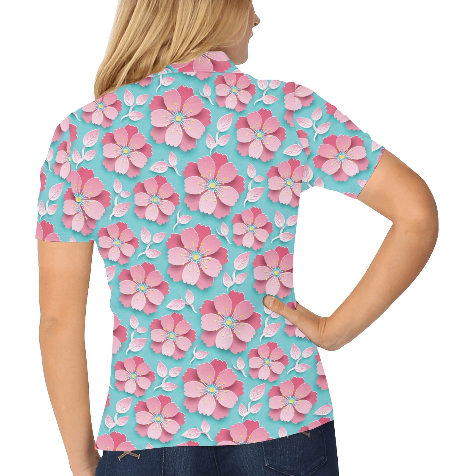 3D sakura cherry blossom pattern Women's All Over Print Polo Shirt