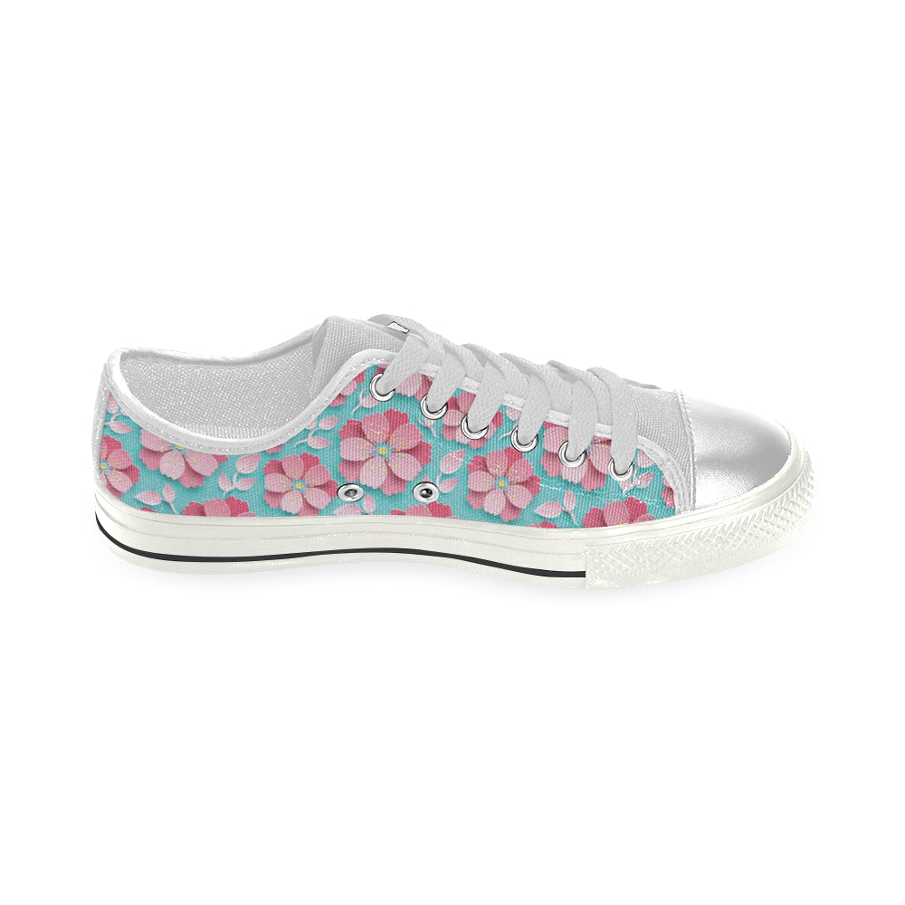 3D sakura cherry blossom pattern Women's Low Top Canvas Shoes White