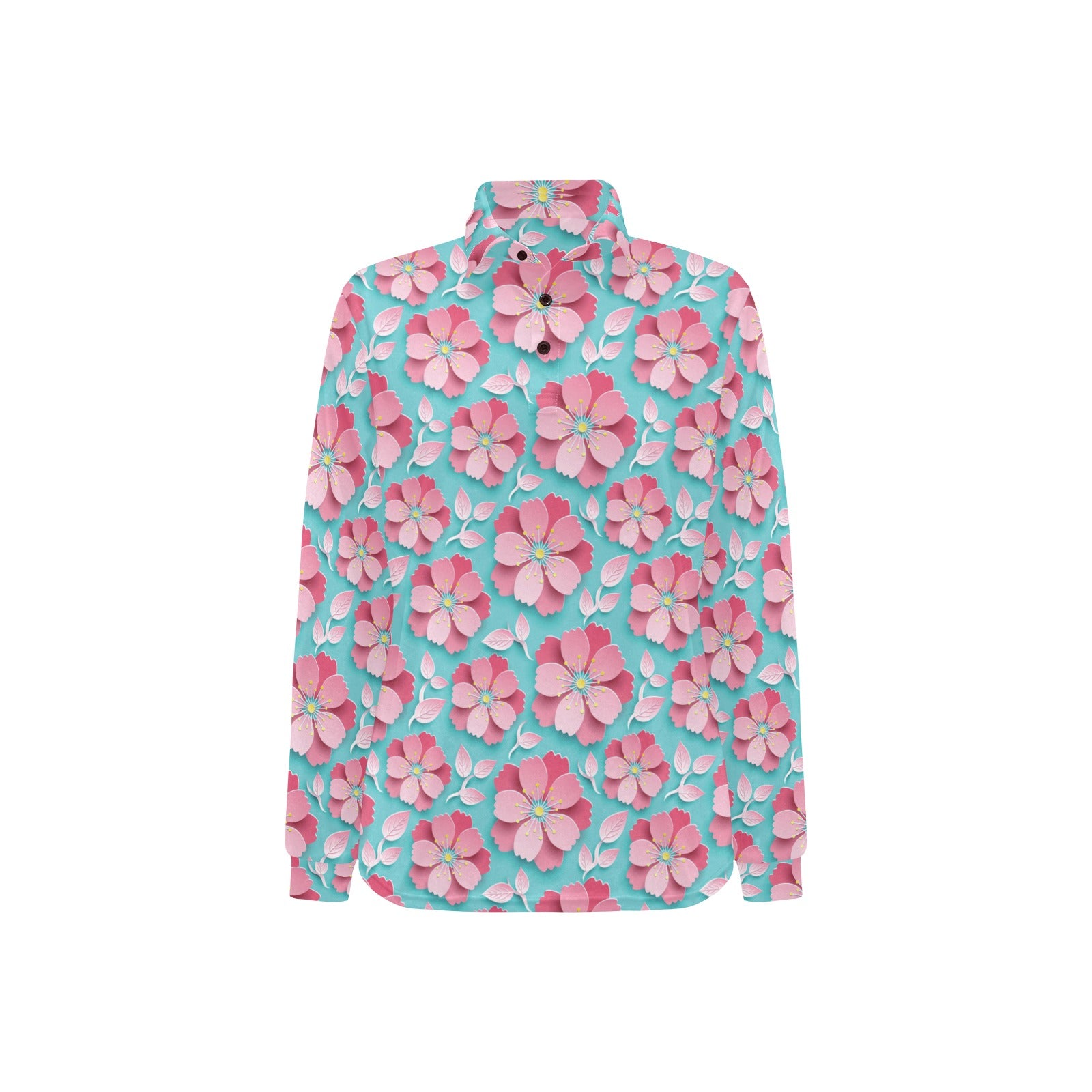 3D sakura cherry blossom pattern Women's Long Sleeve Polo Shirt