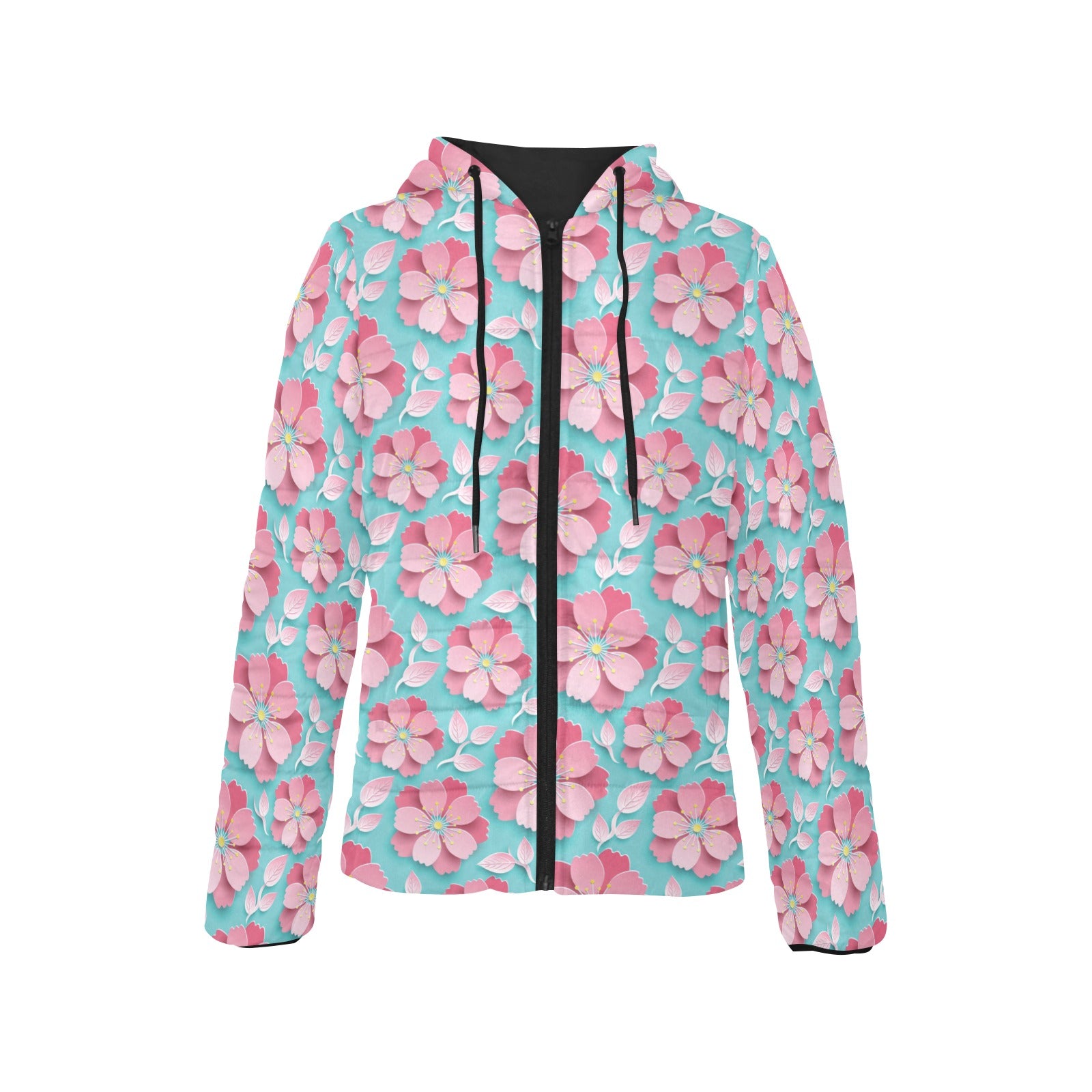 3D sakura cherry blossom pattern Women's Padded Hooded Jacket