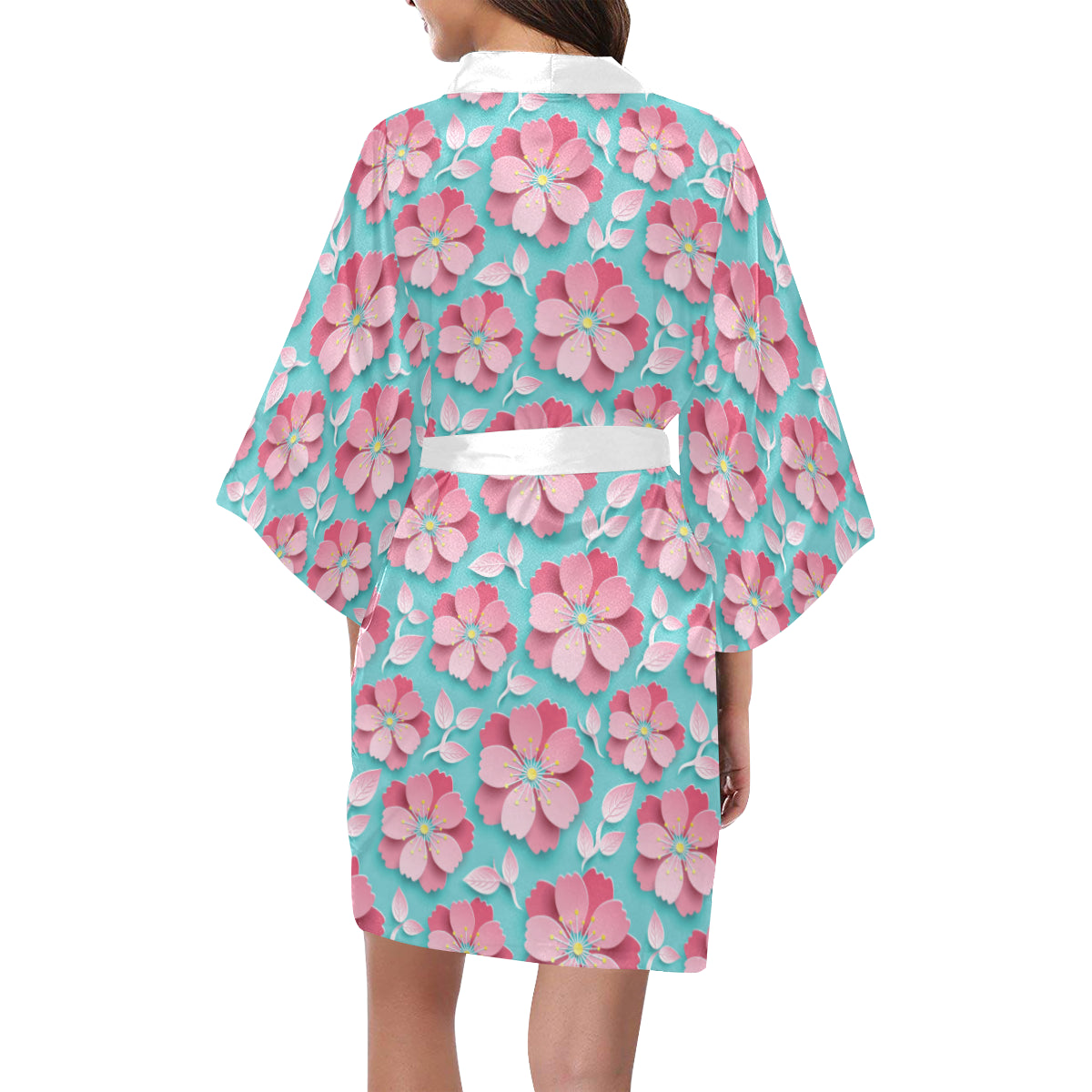 3D sakura cherry blossom pattern Women's Short Kimono Robe
