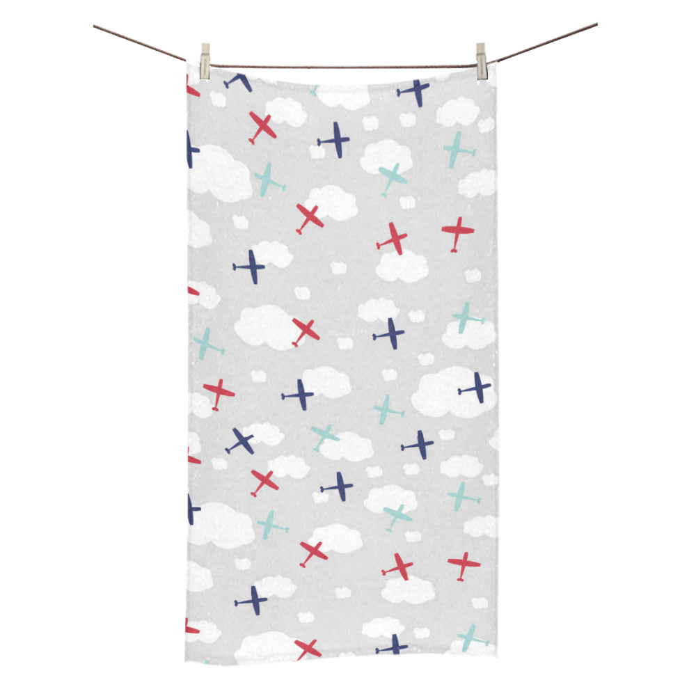 Airplane cloud grey background Bath Towel 30"x56" is a uniqued design and limited item. It made to order, hand printed, and sewn with love in our factory.