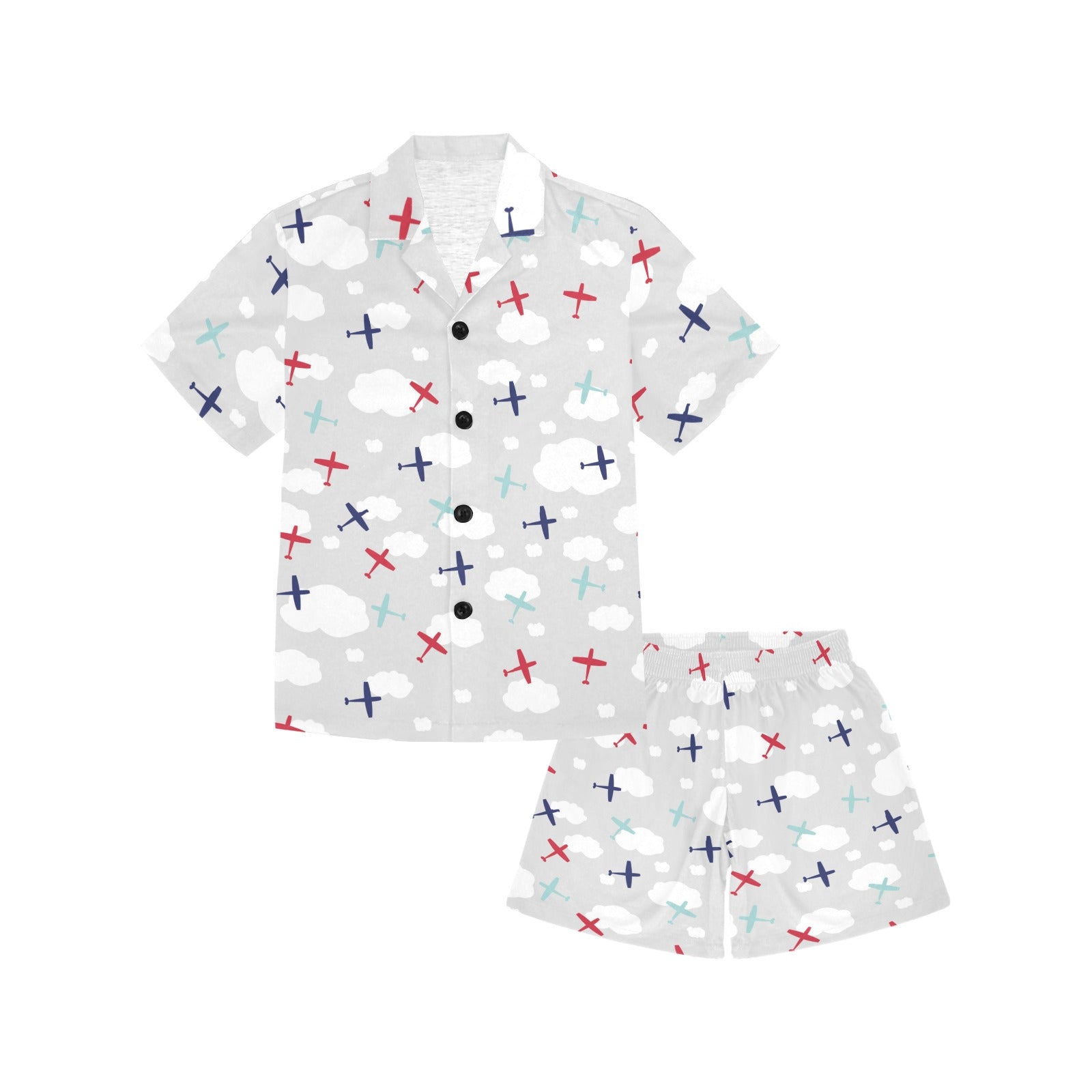 Airplane cloud grey background Kids' Boys' Girls' V-Neck Short Pajama Set