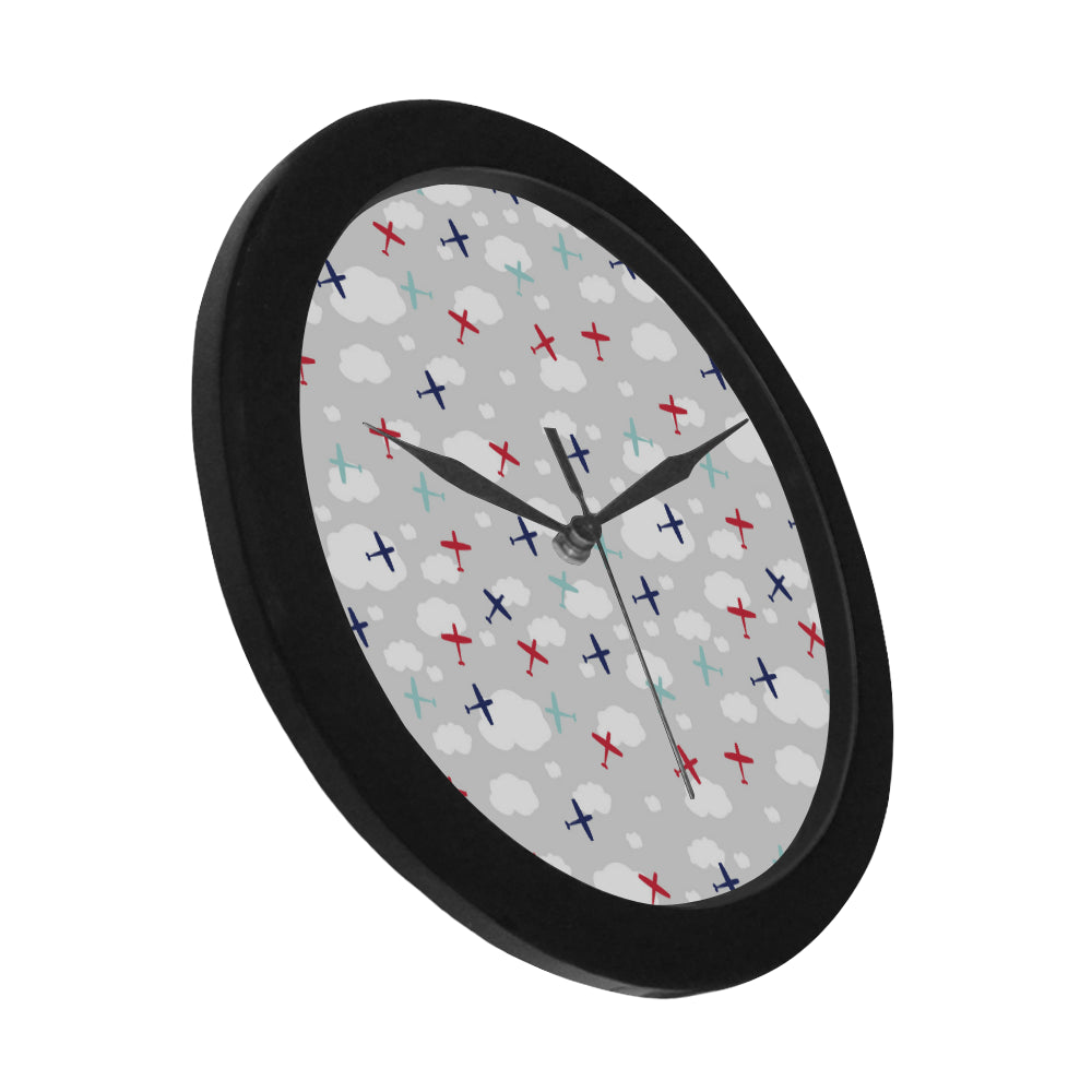 Airplane cloud grey background Boys Celebrating Elegant Black Wall Clock is a uniqued design and limited item. It made to order, hand printed, and sewn with love in our factory.