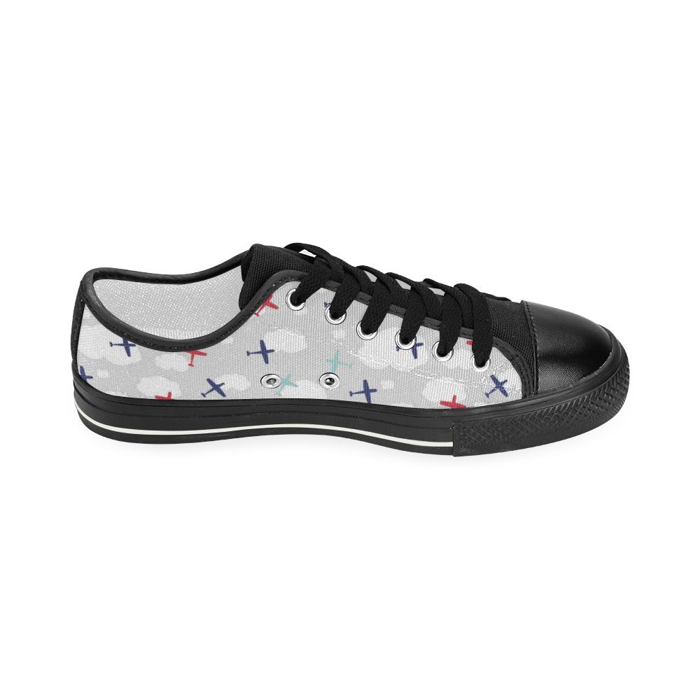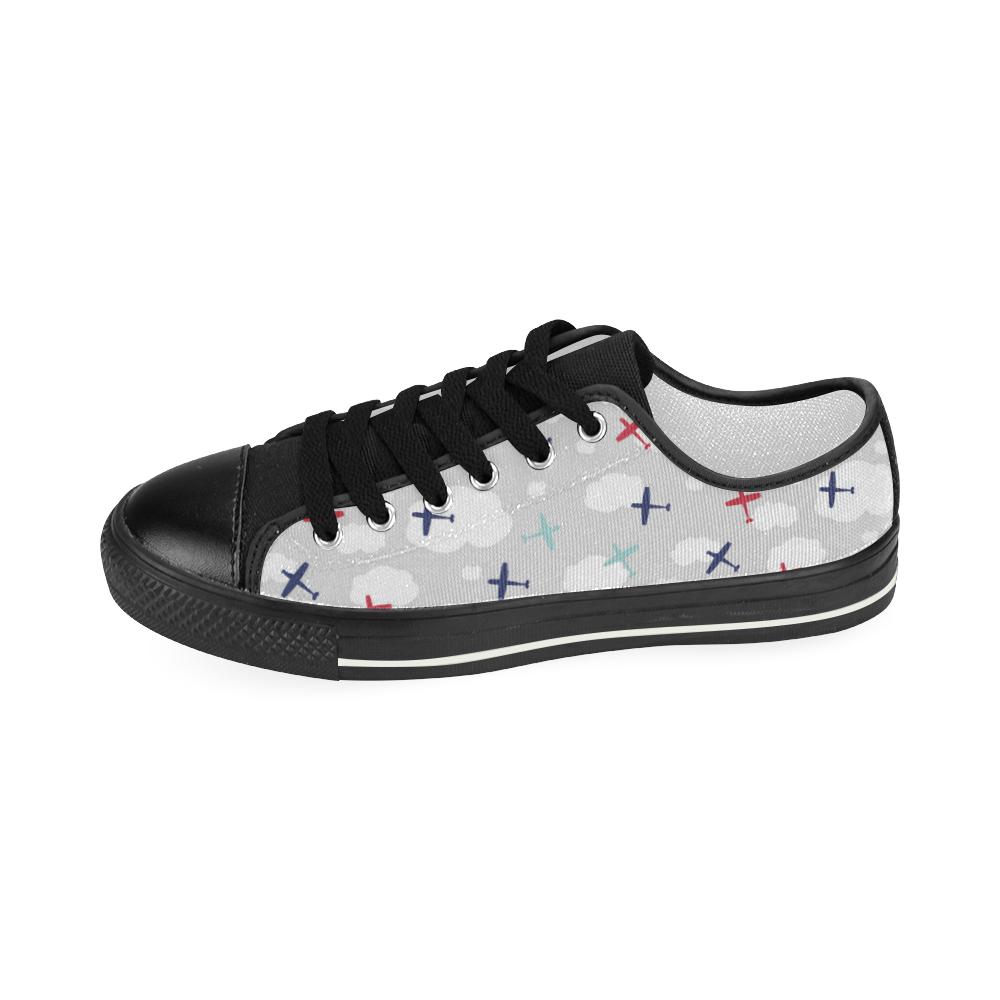 Airplane cloud grey background Kids' Boys' Girls' Low Top Canvas Shoes Black