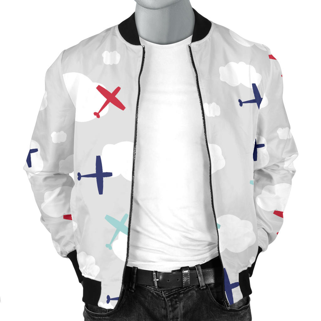 Airplane Cloud Grey Background Men'S Bomber Jacket