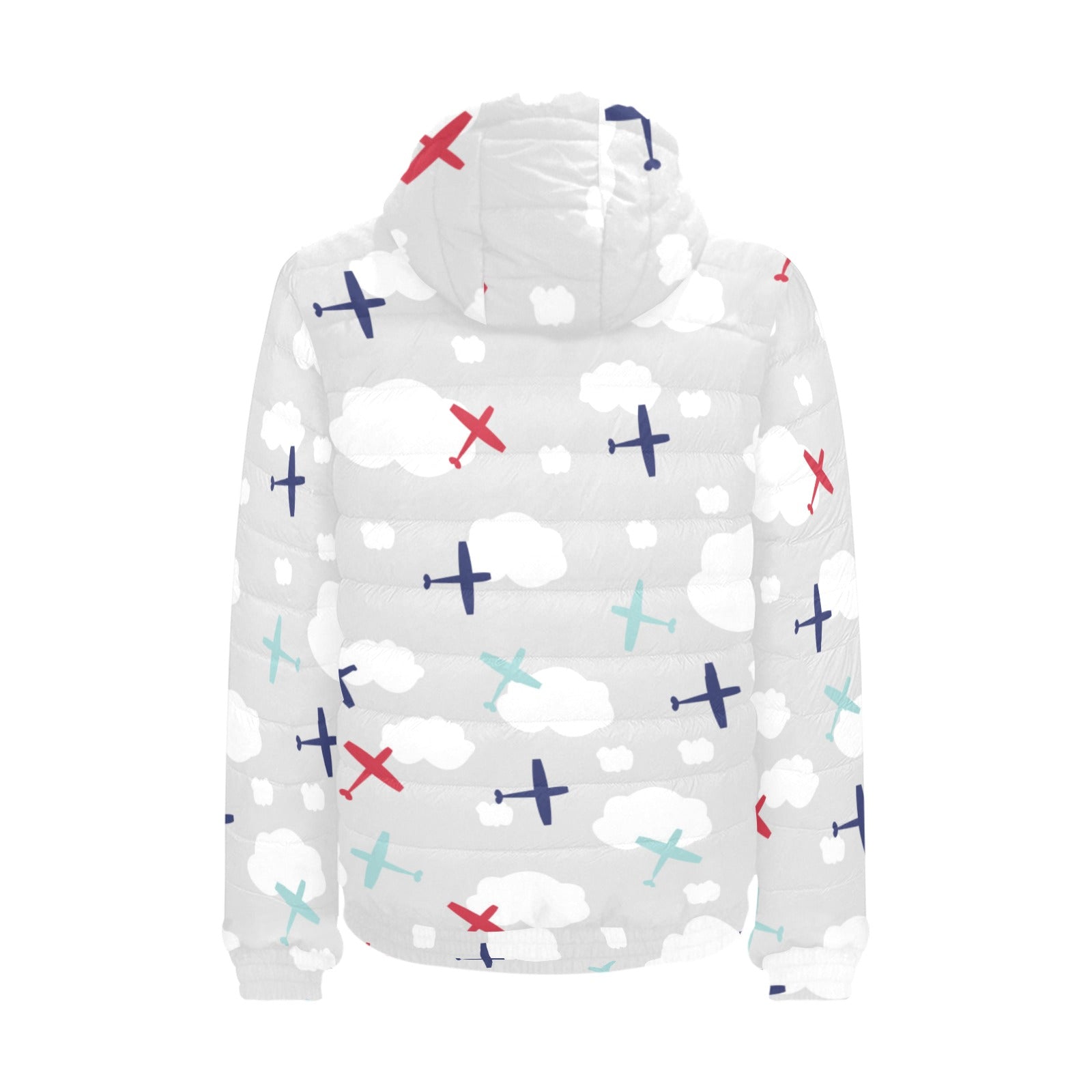 Airplane cloud grey background Men's Padded Hooded Jacket