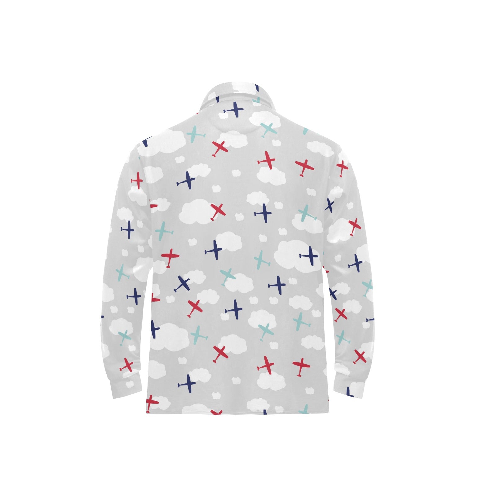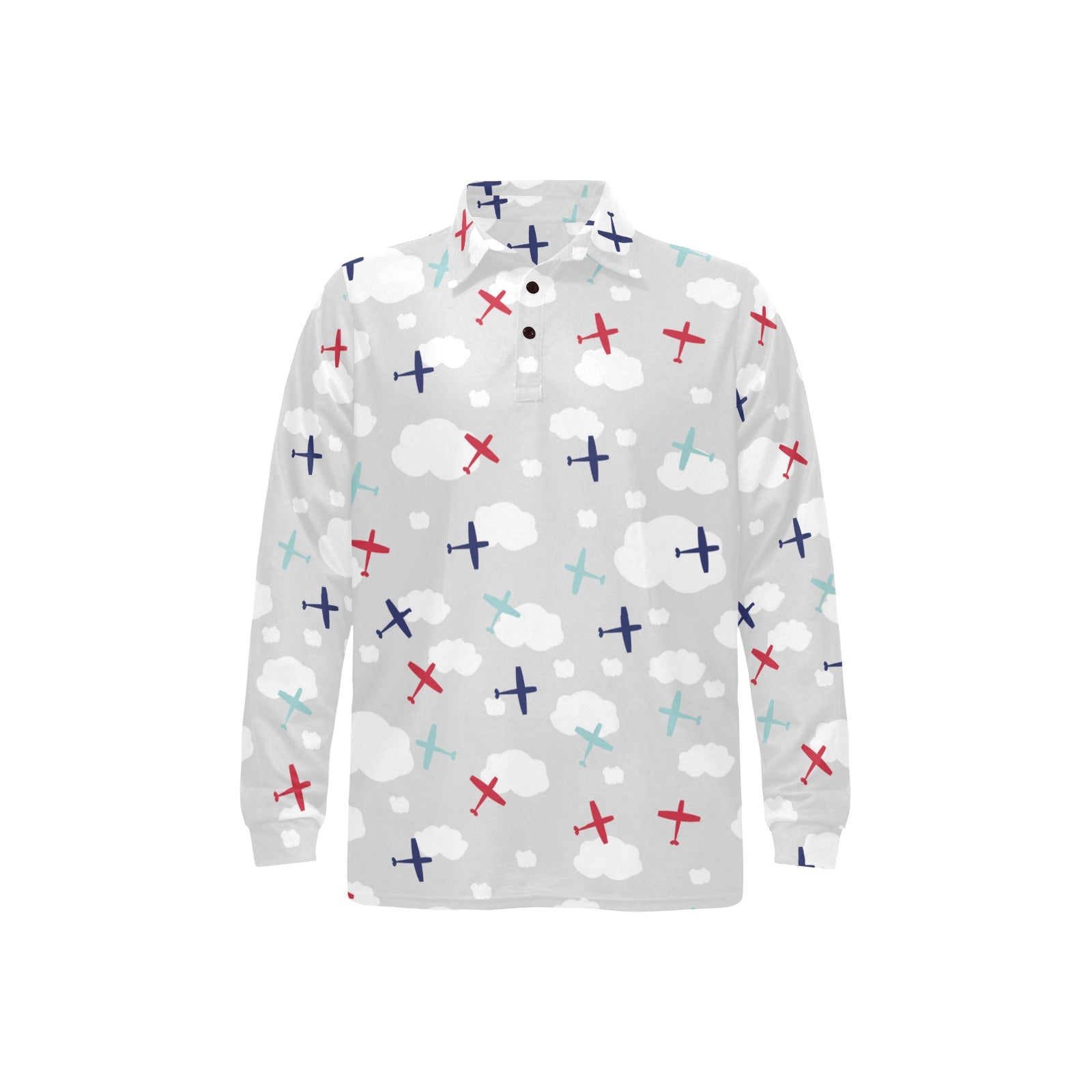 Airplane cloud grey background Men's Long Sleeve Polo Shirt