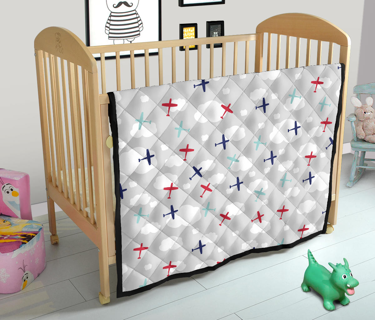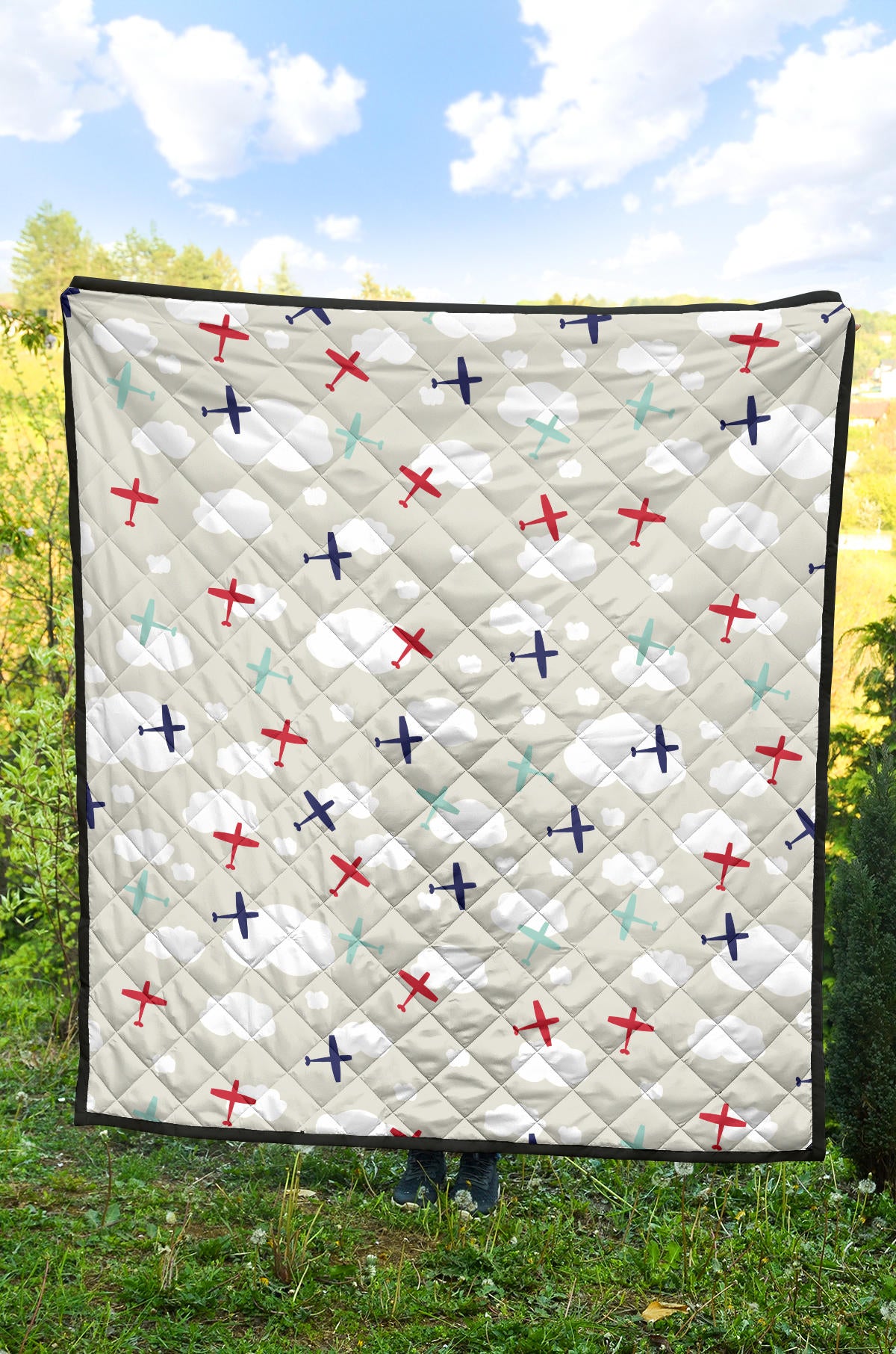 Airplane Cloud Grey Background Premium Quilt is a uniqued design and limited item. It made to order, hand printed, and sewn with love in our factory.