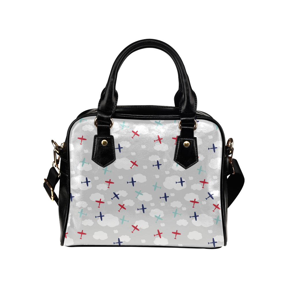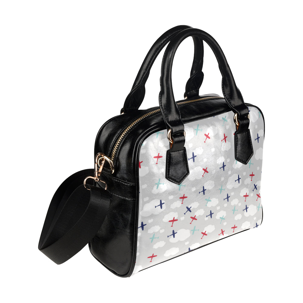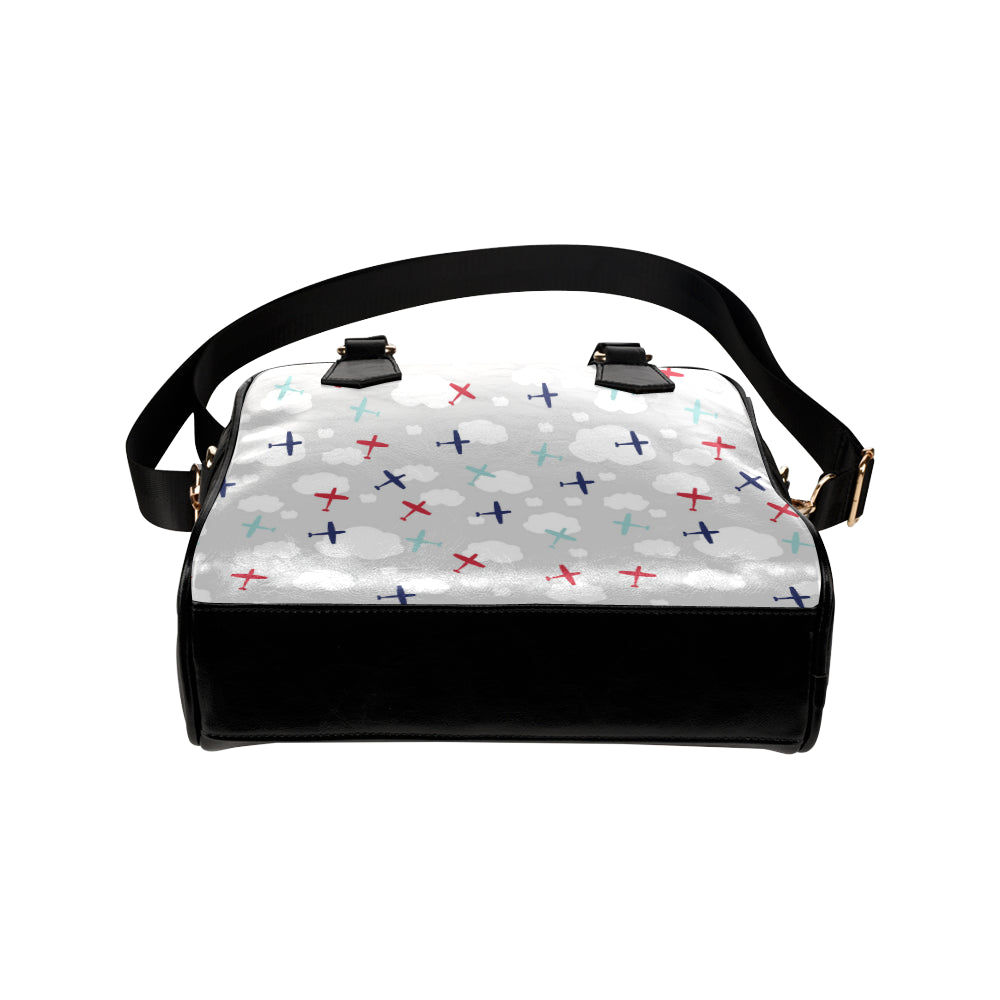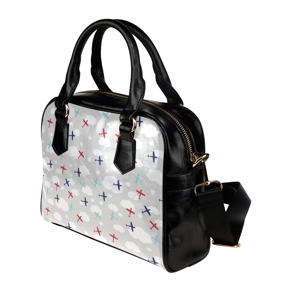 Airplane cloud grey background Shoulder Handbag is a uniqued design and limited item. It made to order, hand printed, and sewn with love in our factory.