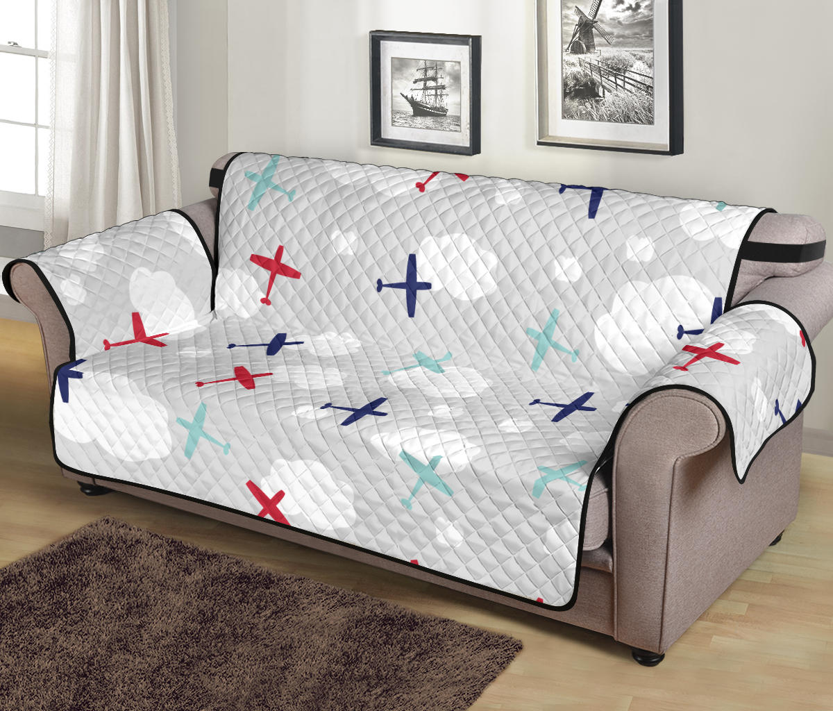 Airplane cloud grey background Sofa Cover Protector
