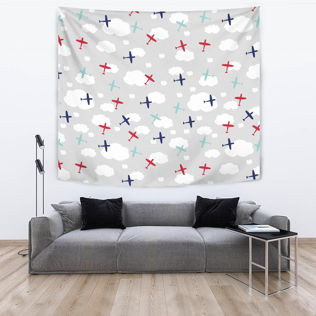 Airplane cloud grey background Tapestry is a uniqued design and limited item. It made to order, hand printed, and sewn with love in our factory.