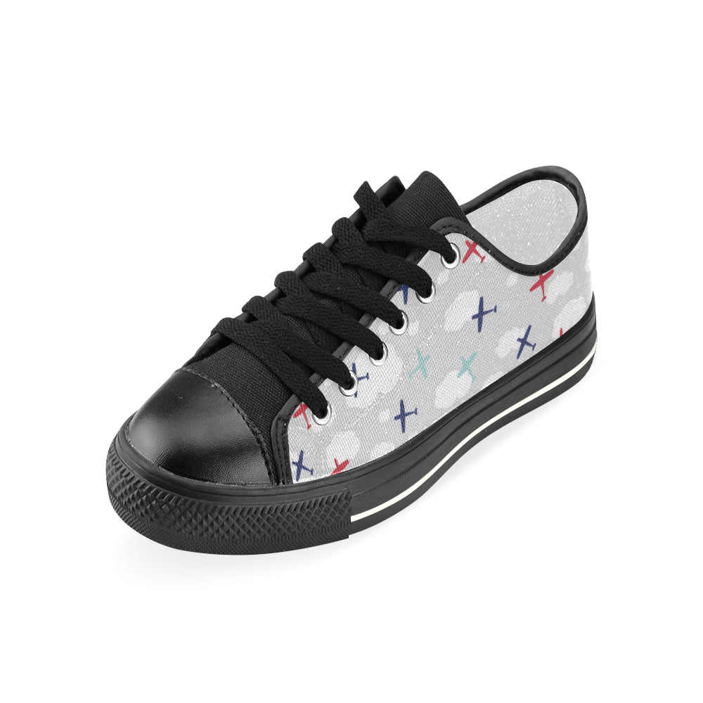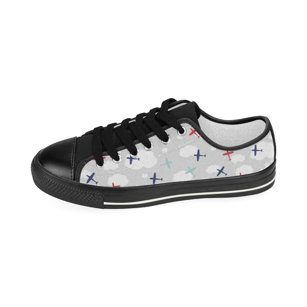 Airplane cloud grey background Women's Low Top Canvas Shoes Black