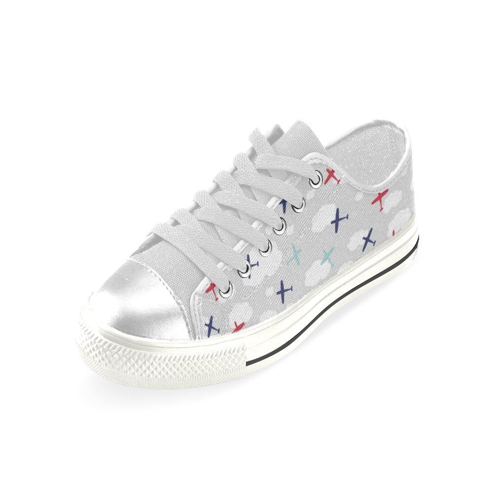 Airplane cloud grey background Women's Low Top Canvas Shoes White