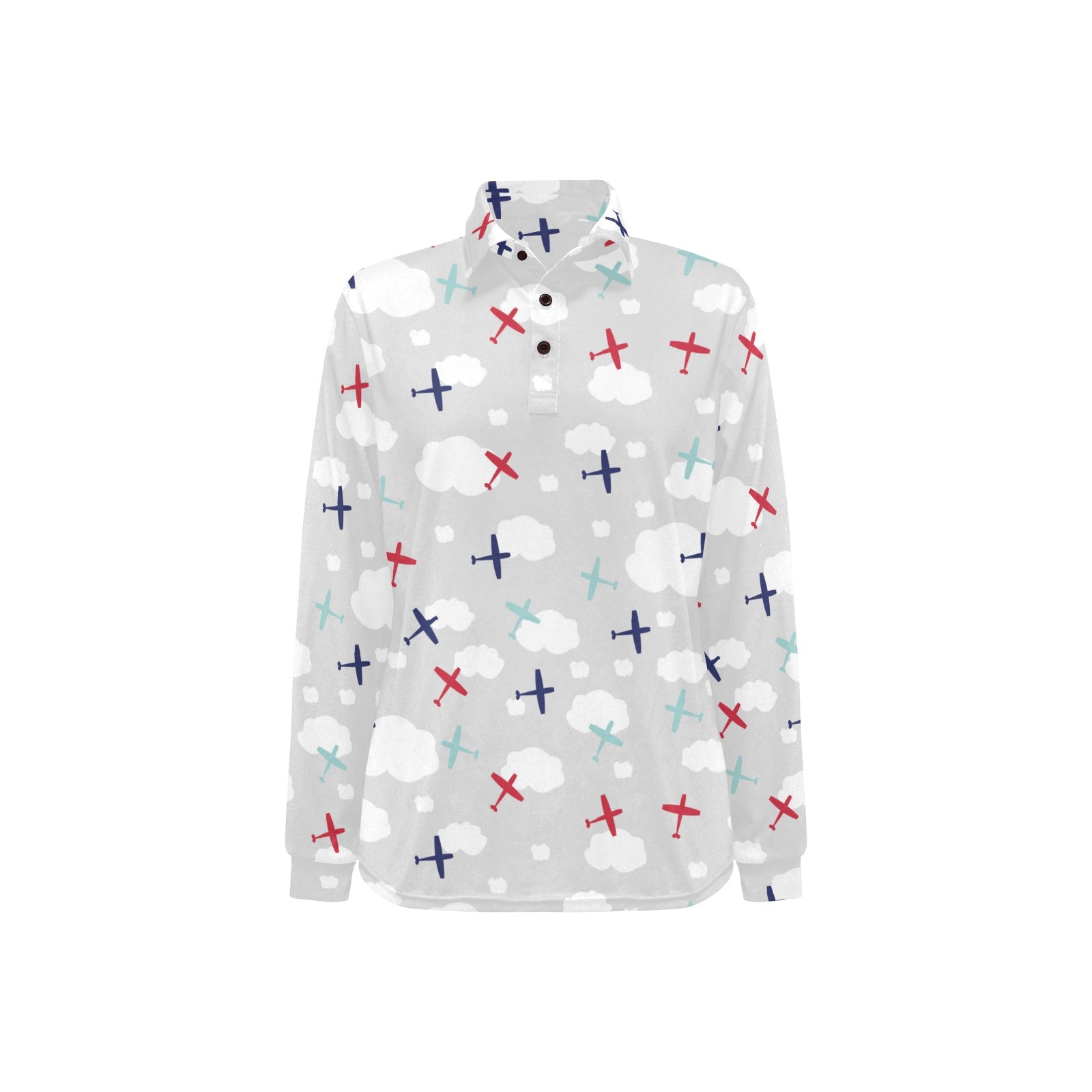Airplane cloud grey background Women's Long Sleeve Polo Shirt