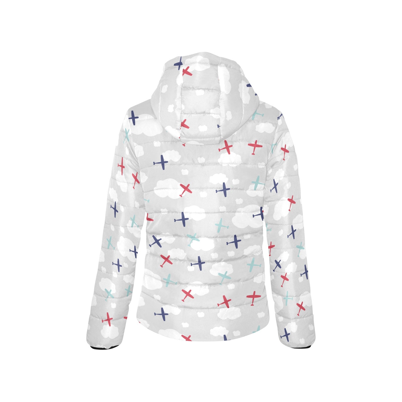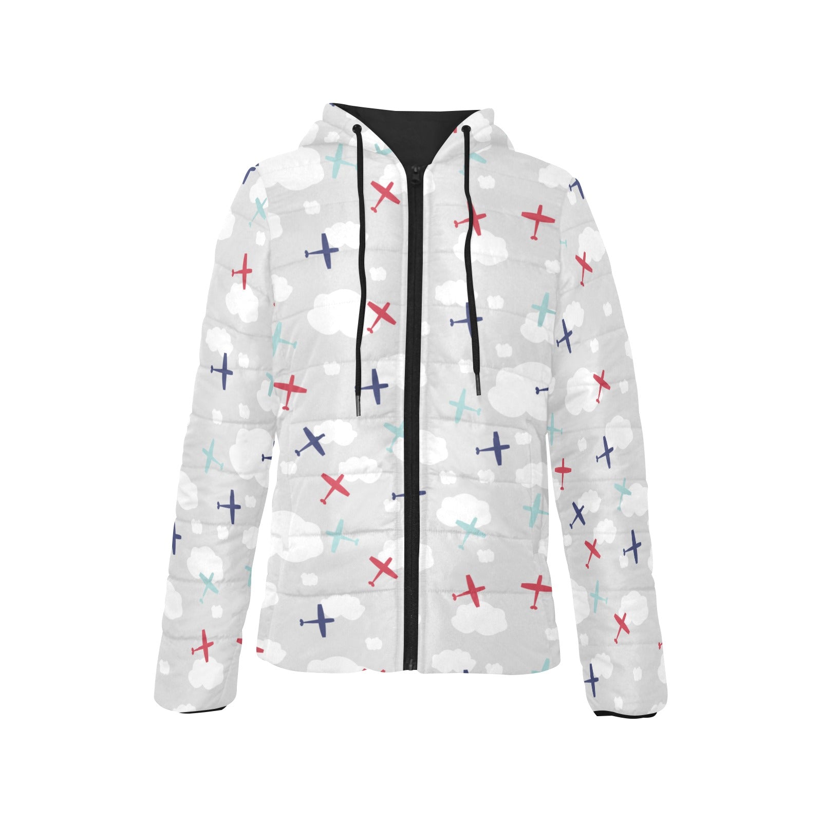 Airplane cloud grey background Women's Padded Hooded Jacket