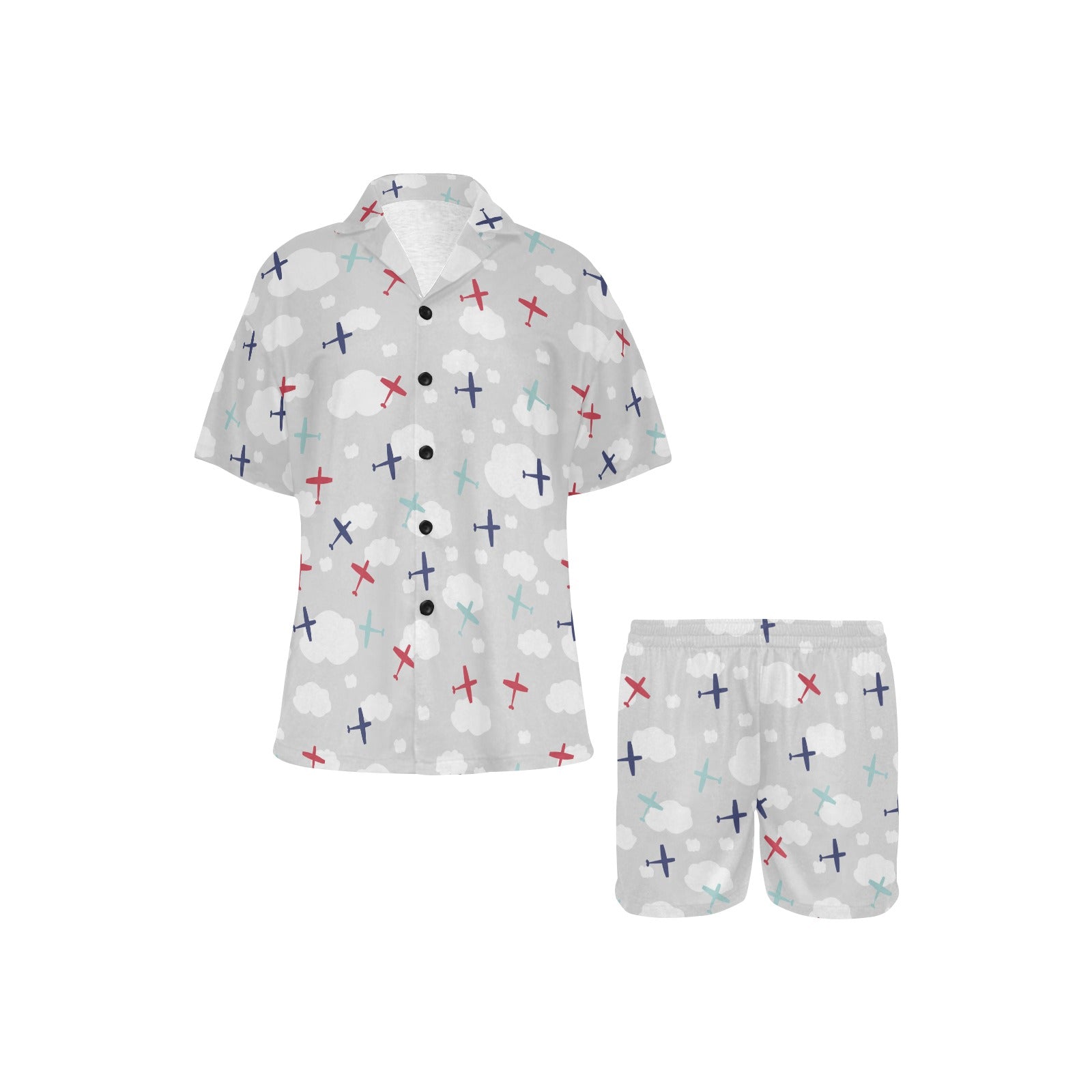 Airplane cloud grey background Women's V-Neck Short Pajama Set