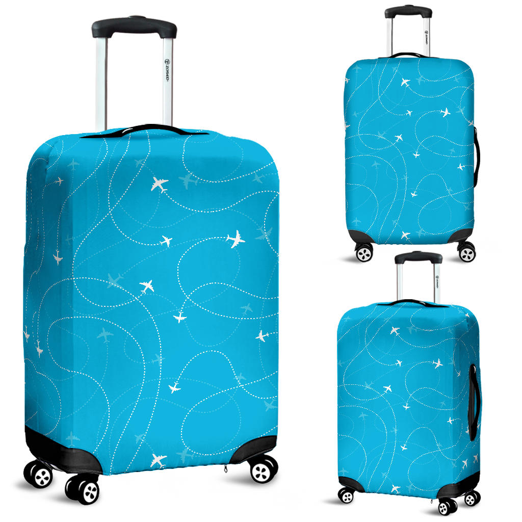 Airplane destinations blue background Luggage Covers is a uniqued design and limited item. It made to order, hand printed, and sewn with love in our factory.