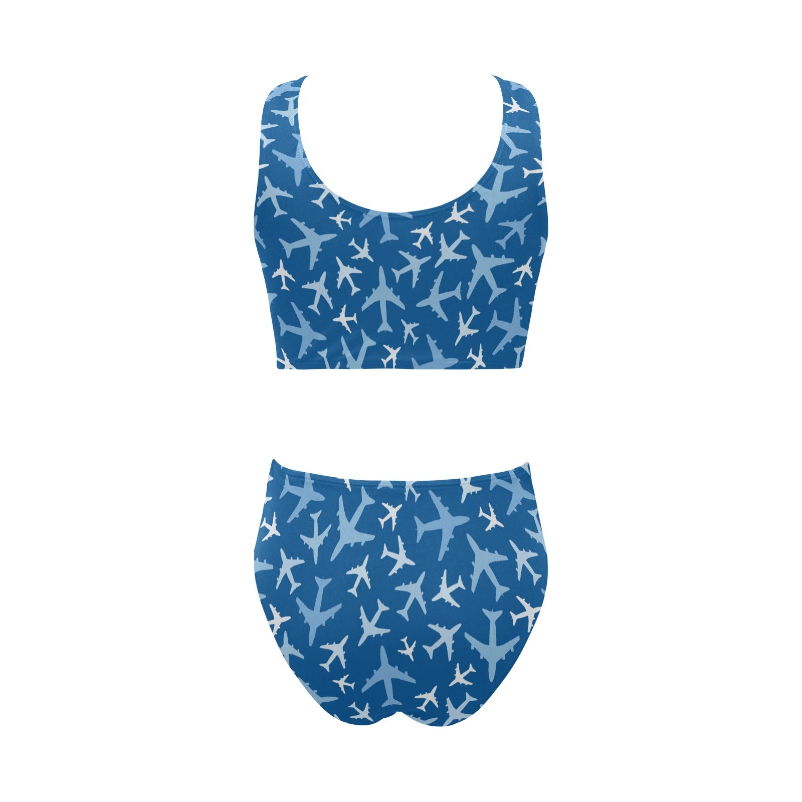 Airplane pattern in the sky Chest Bowknot High Waisted Bikini Swimsuit