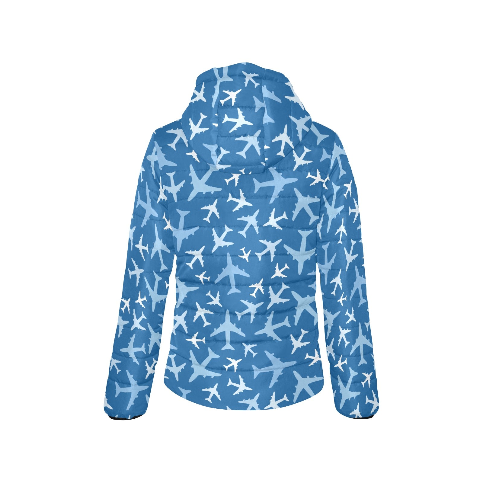 Airplane pattern in the sky Women's Padded Hooded Jacket