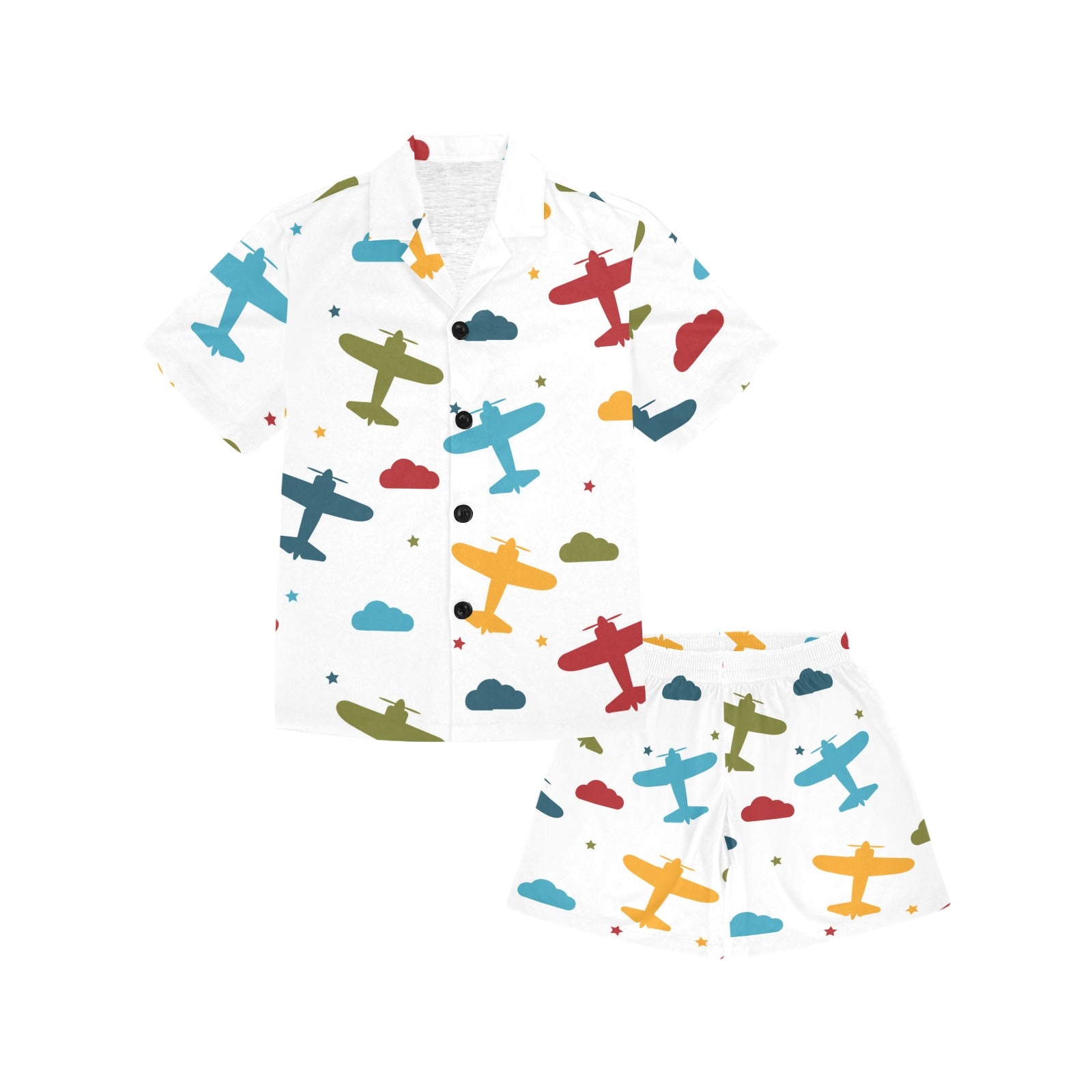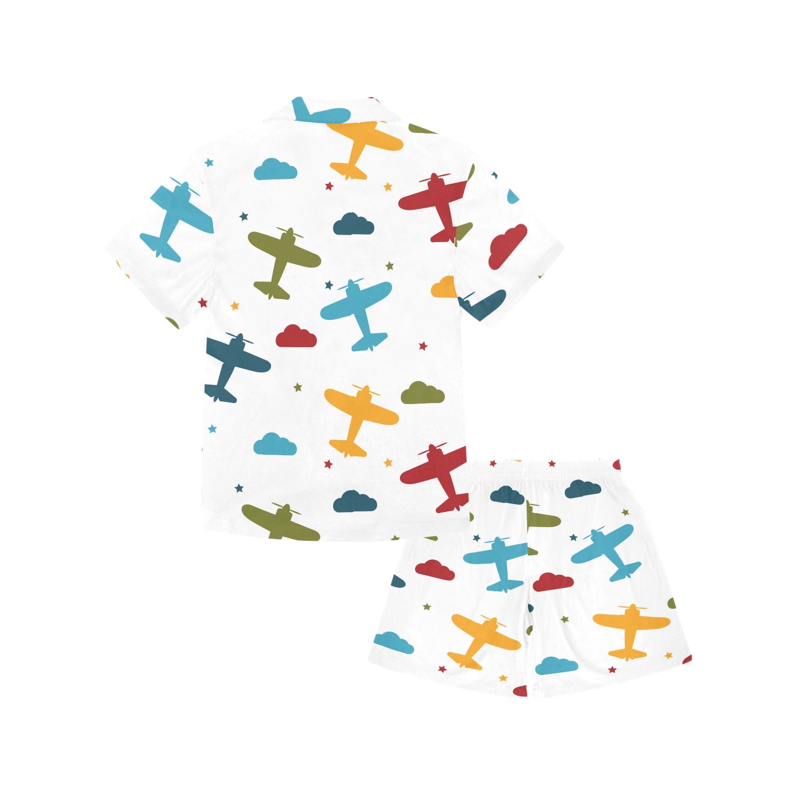 Airplane star cloud colorful Kids' Boys' Girls' V-Neck Short Pajama Set