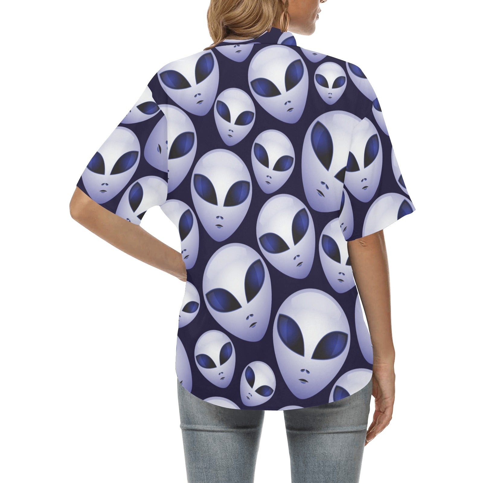 Alien Pattern Print Design 01 Women's All Over Print Hawaiian Shirt