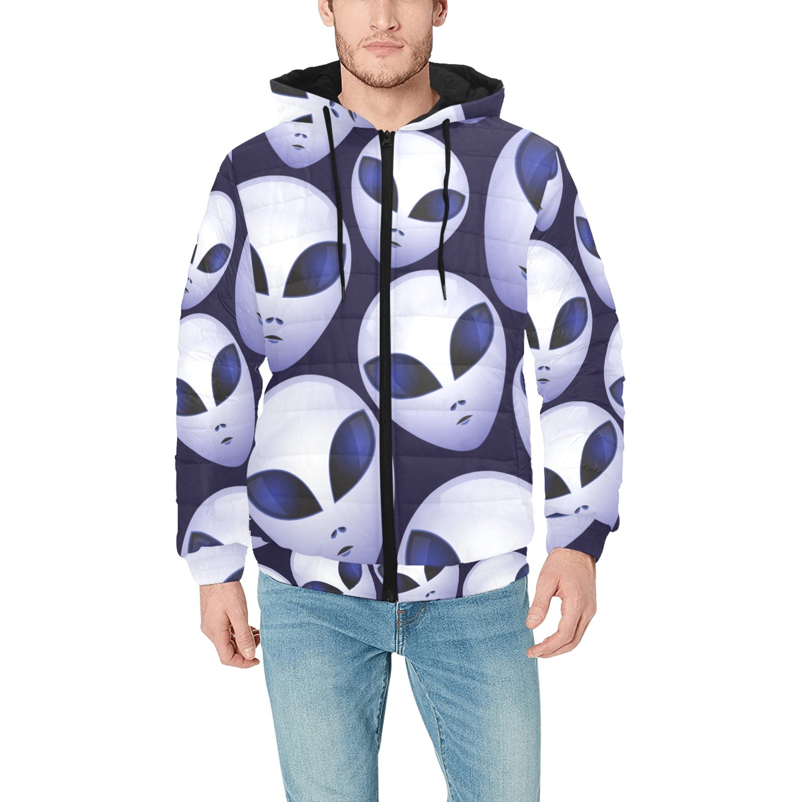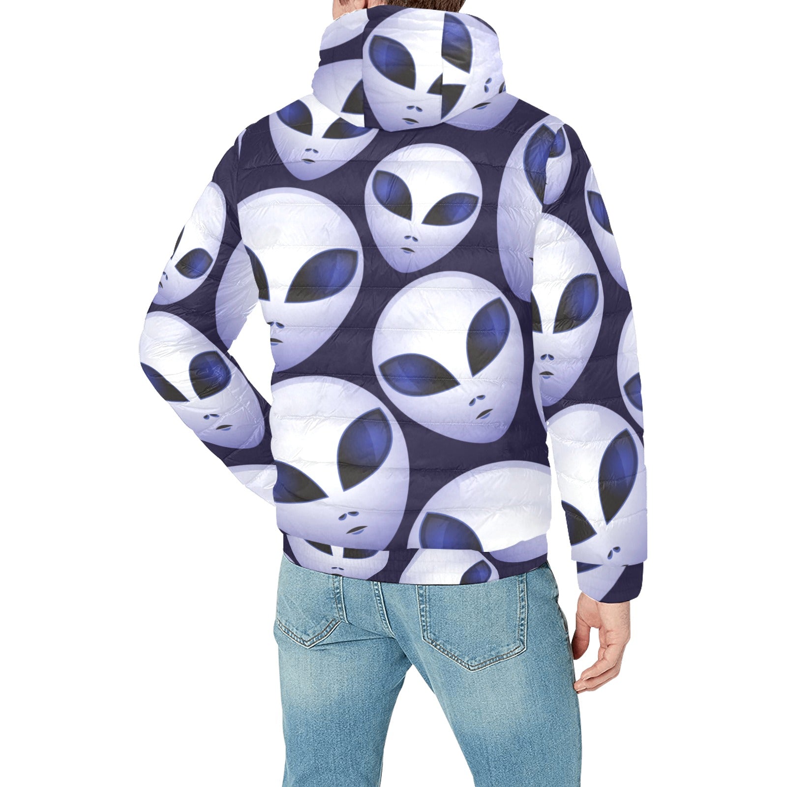 Alien Pattern Print Design 01 Men's Padded Hooded Jacket