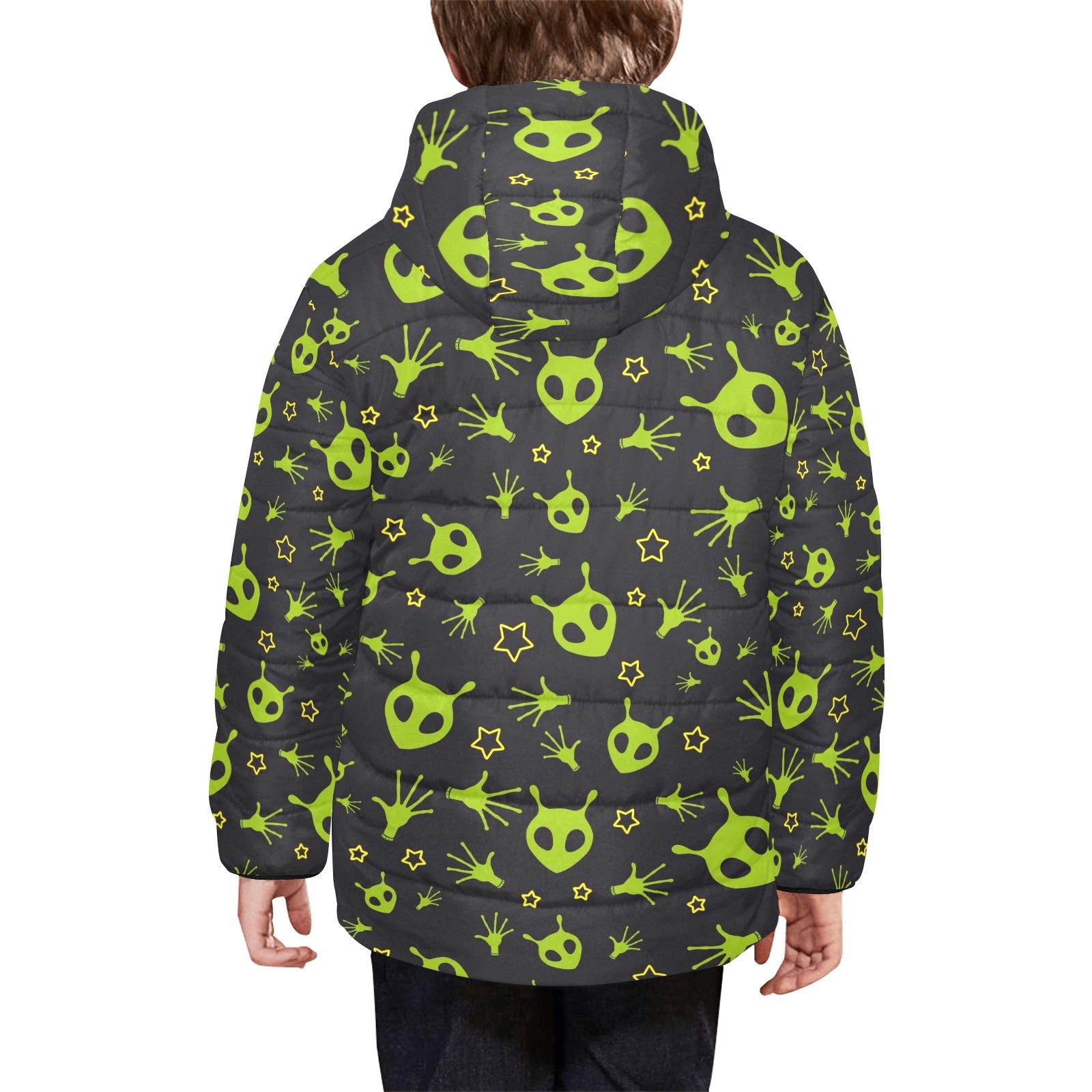 Alien Pattern Print Design 02 Kids' Boys' Girls' Padded Hooded Jacket