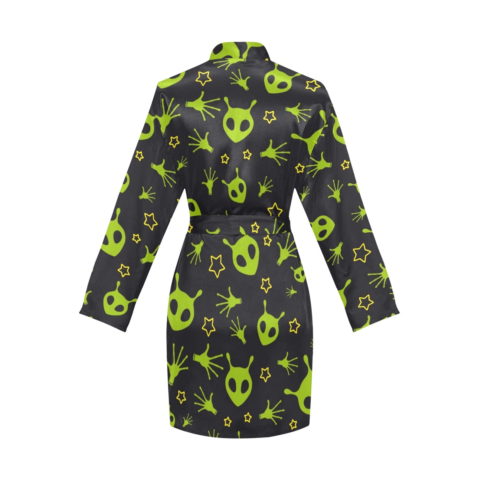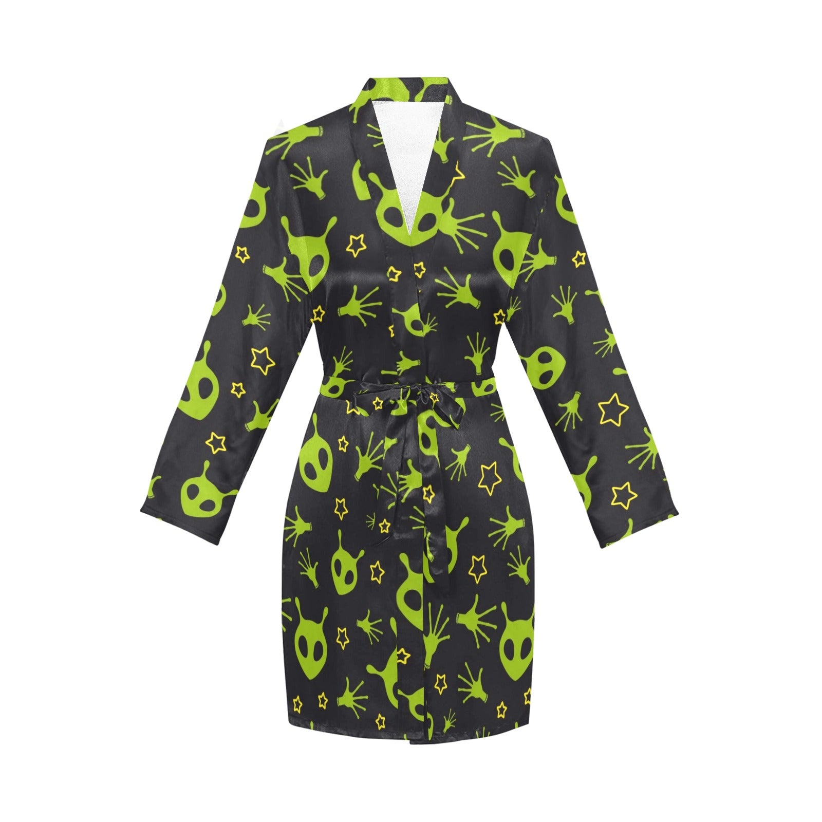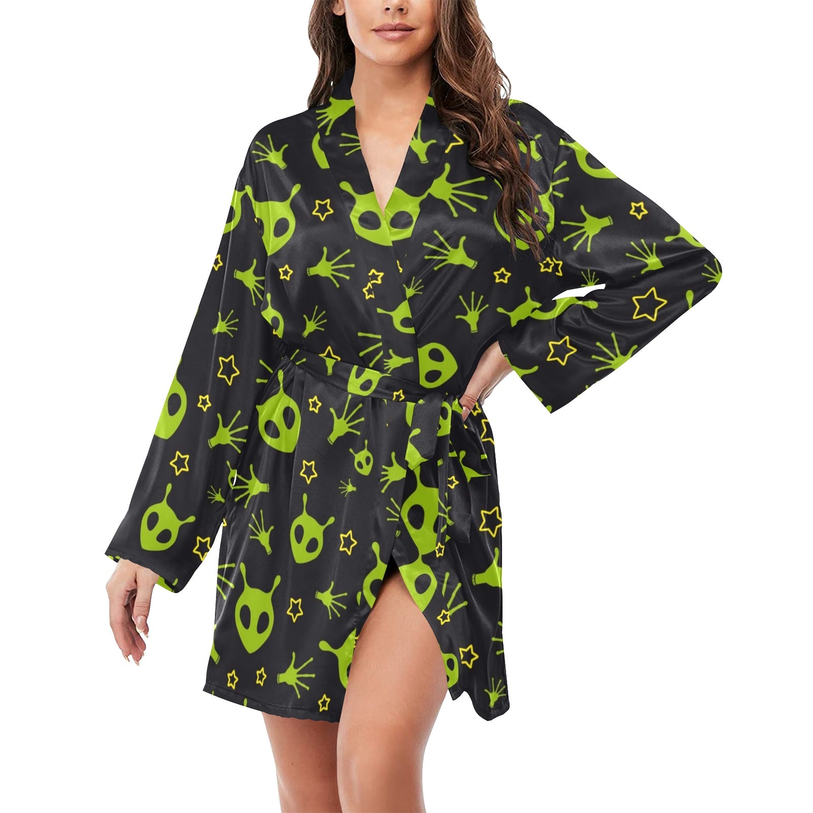 Alien Pattern Print Design 02 Women's Long Sleeve Belted Night Robe