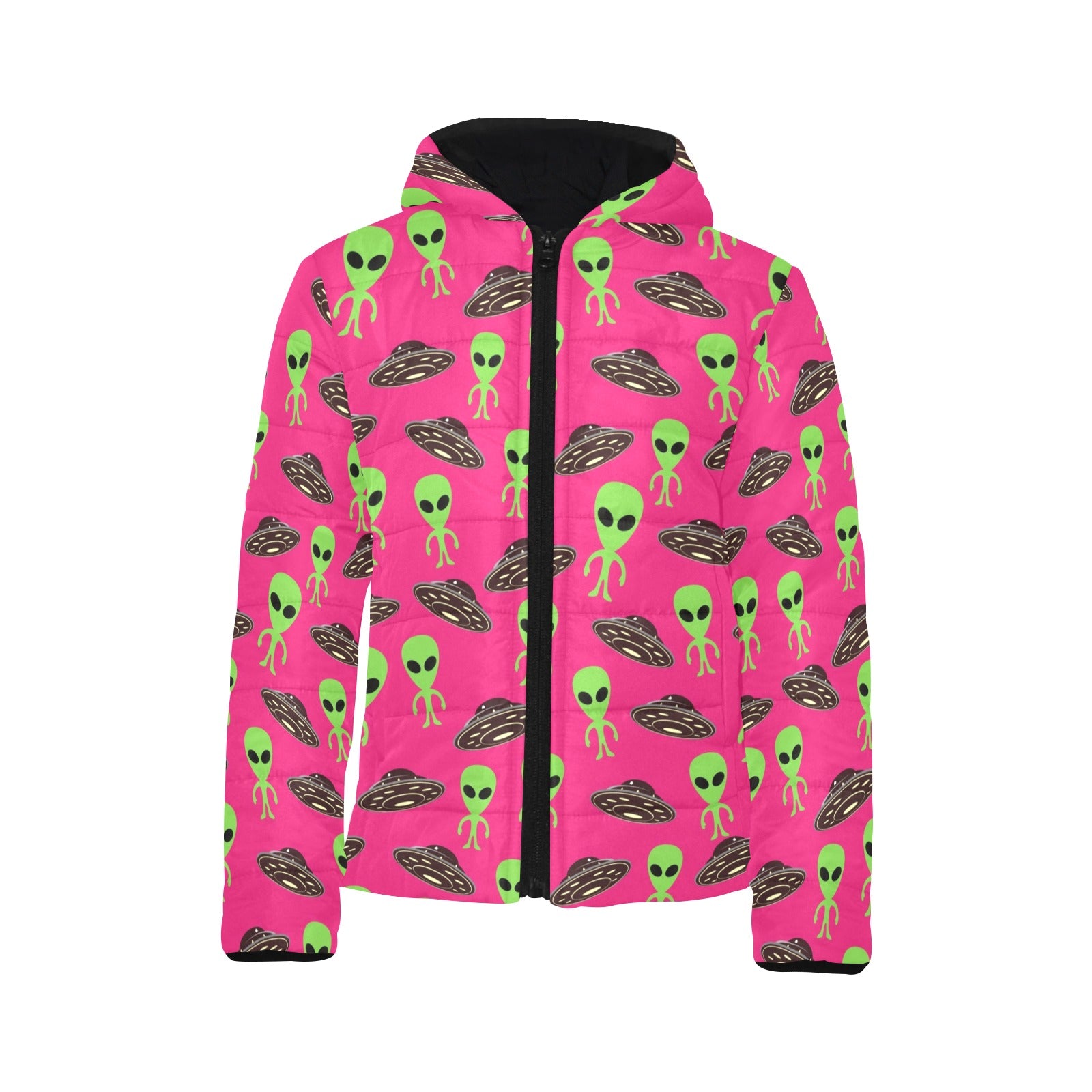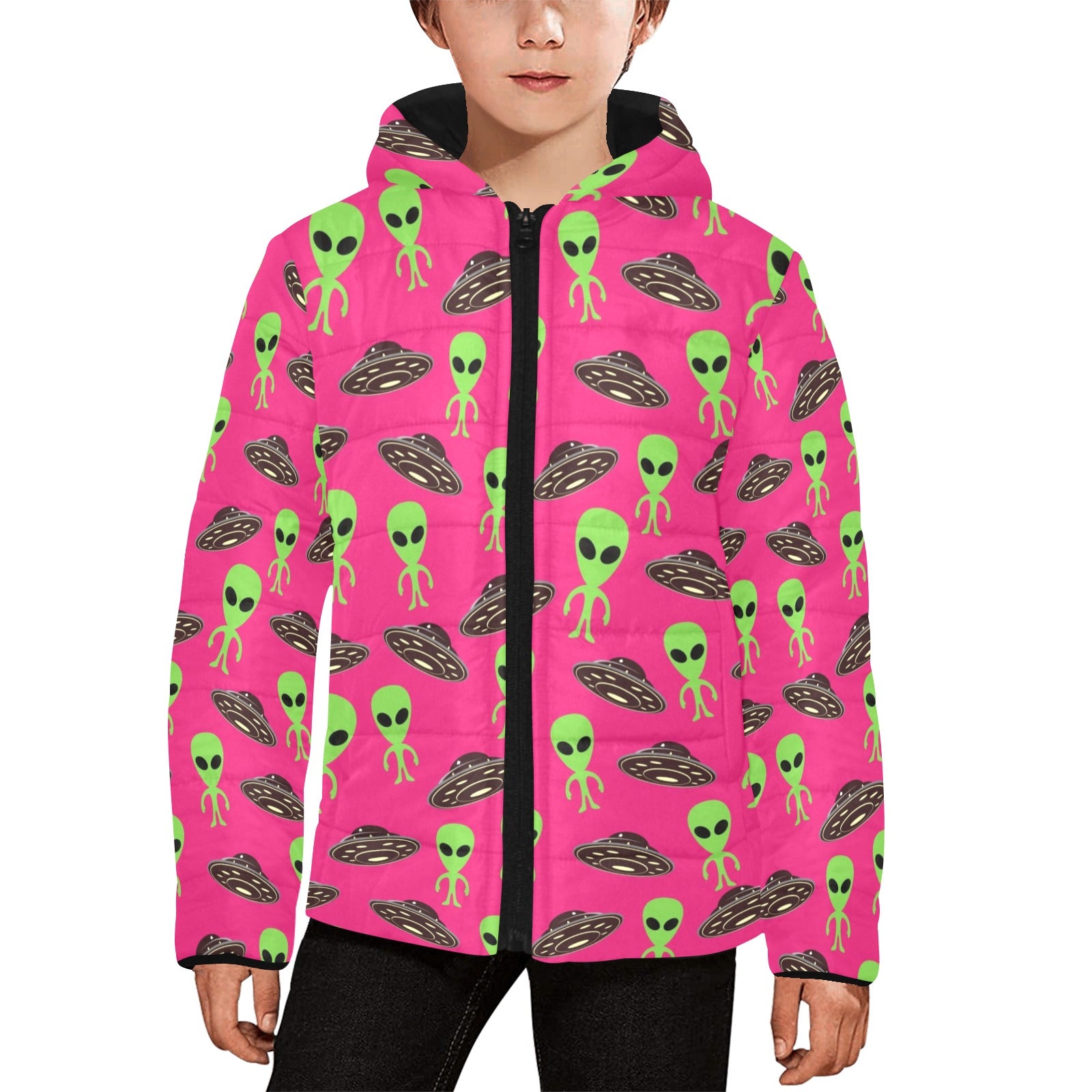 Alien Pattern Print Design 03 Kids' Boys' Girls' Padded Hooded Jacket