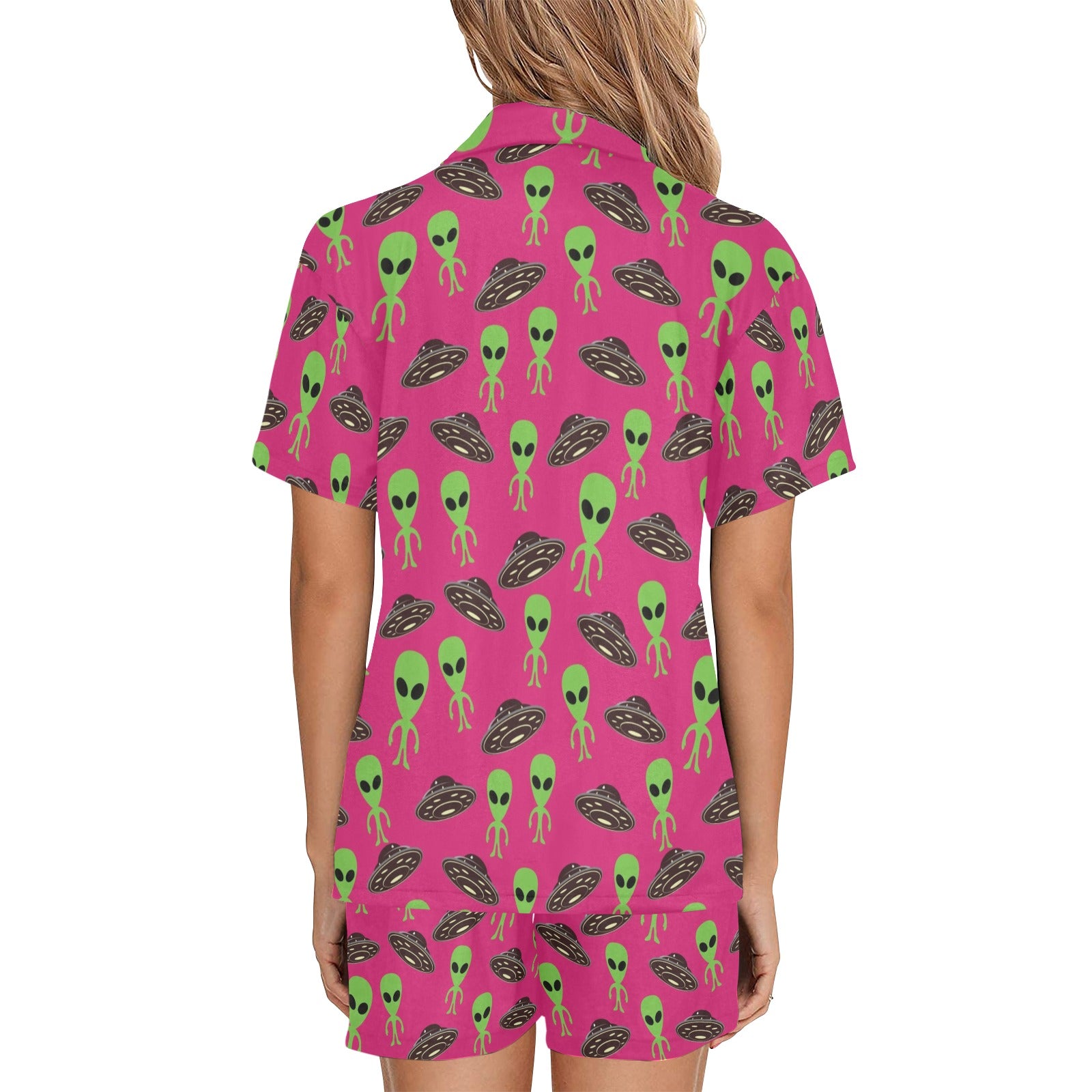 Alien Pattern Print Design 03 Women's V-Neck Short Pajama Set