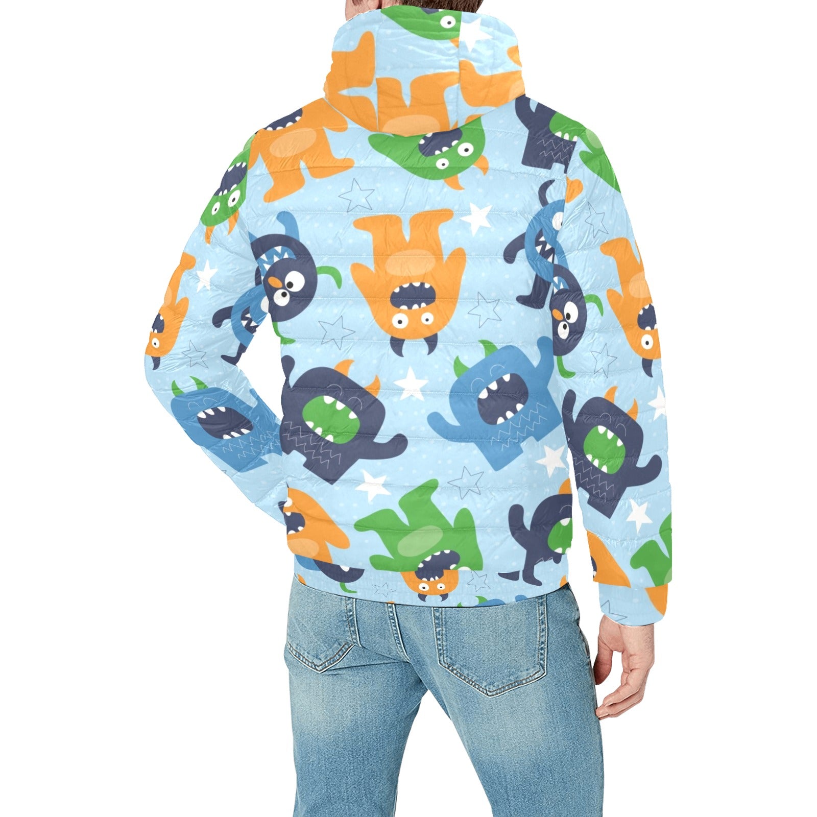Alien Pattern Print Design 04 Men's Padded Hooded Jacket