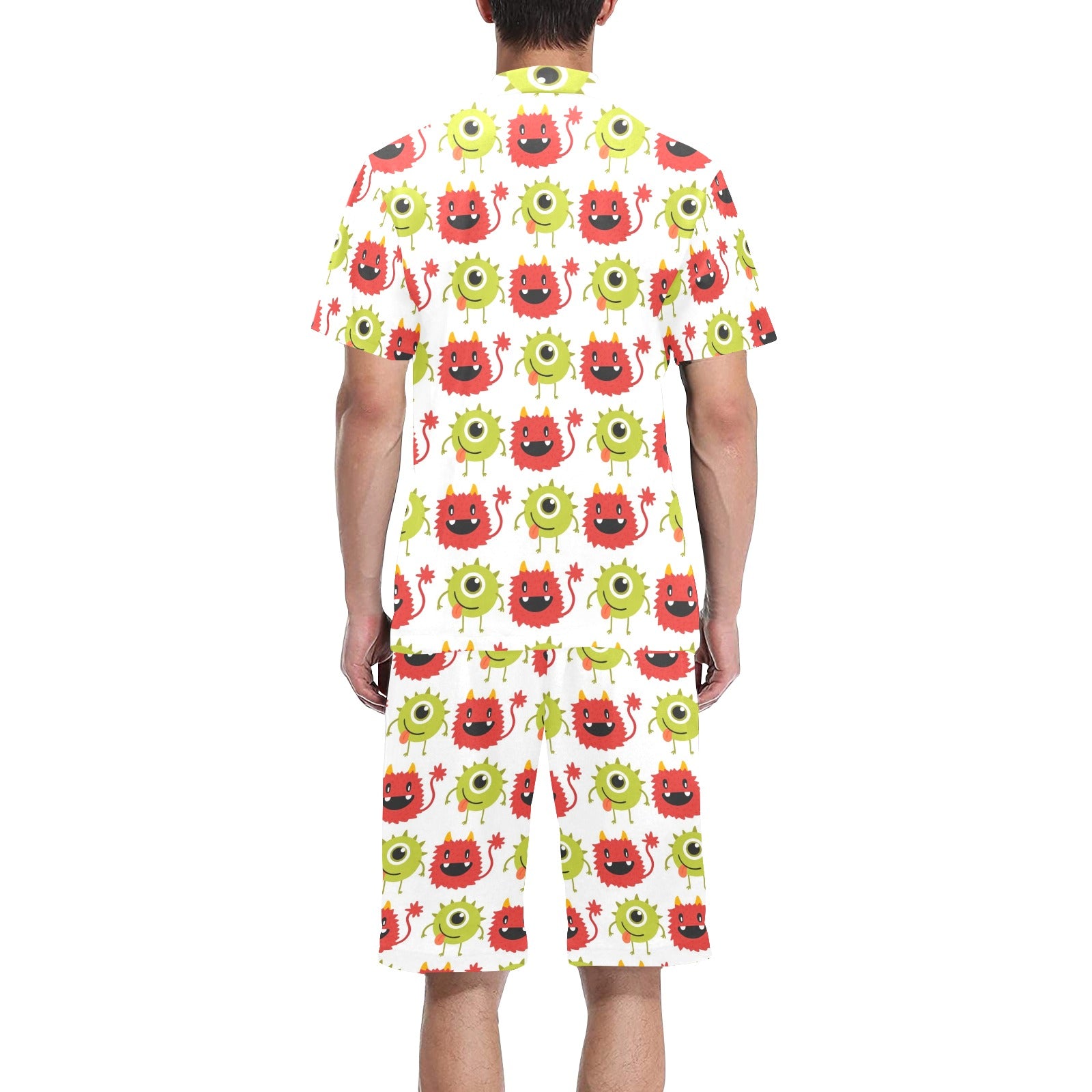 Alien Pattern Print Design 05 Men's V-Neck Short Pajama Set