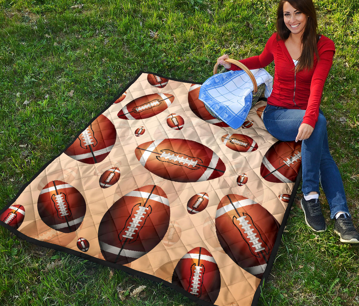 American Football Ball Design Pattern Premium Quilt is a uniqued design and limited item. It made to order, hand printed, and sewn with love in our factory.