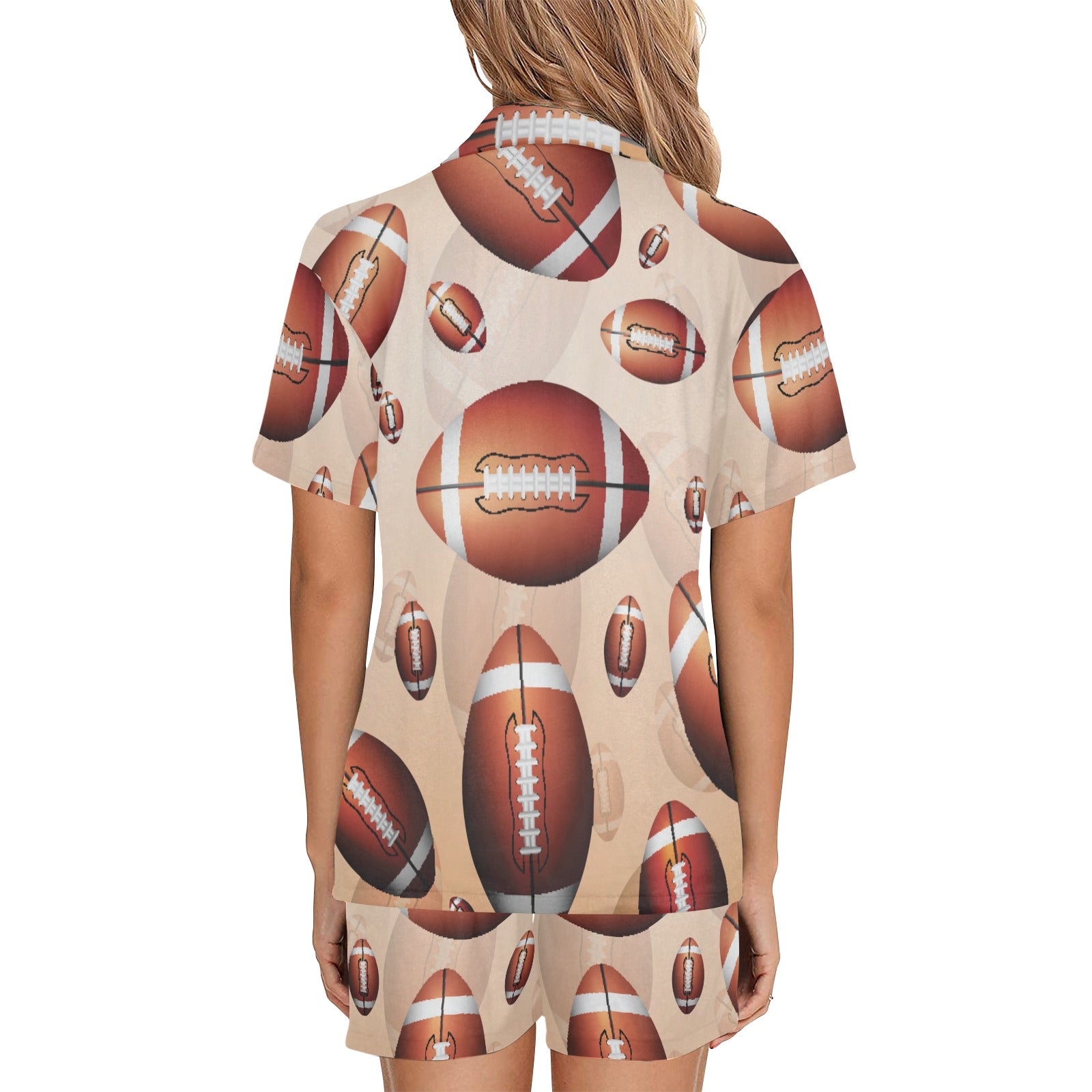 American football ball design pattern Women's V-Neck Short Pajama Set