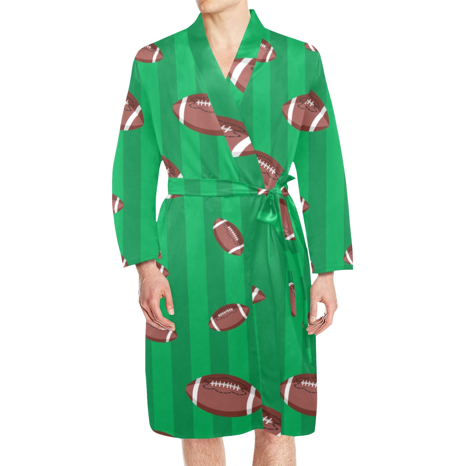 American football ball field background Men's Long Sleeve Belted Night Robe