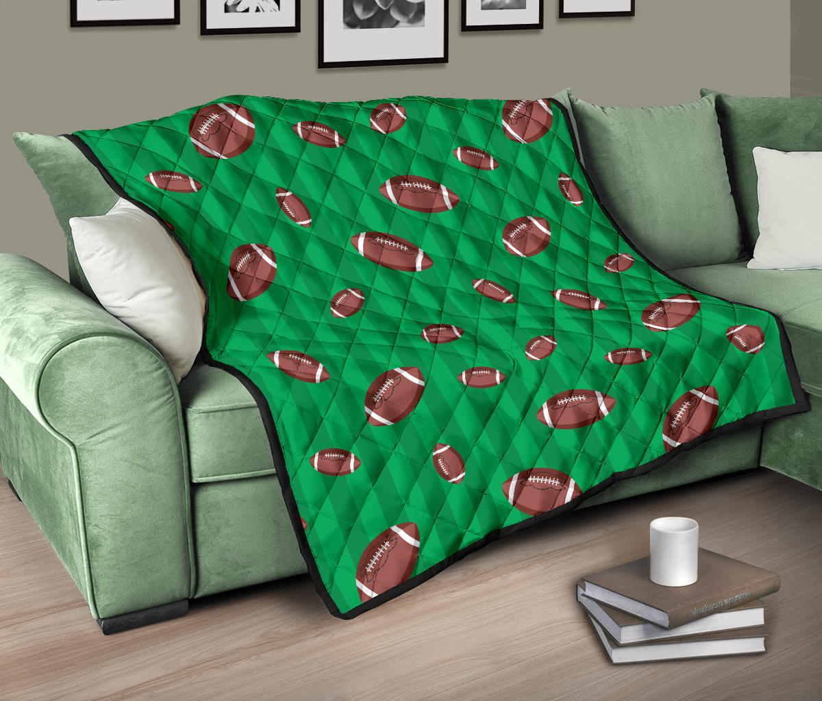 American Football Ball Field Background Premium Quilt is a uniqued design and limited item. It made to order, hand printed, and sewn with love in our factory.