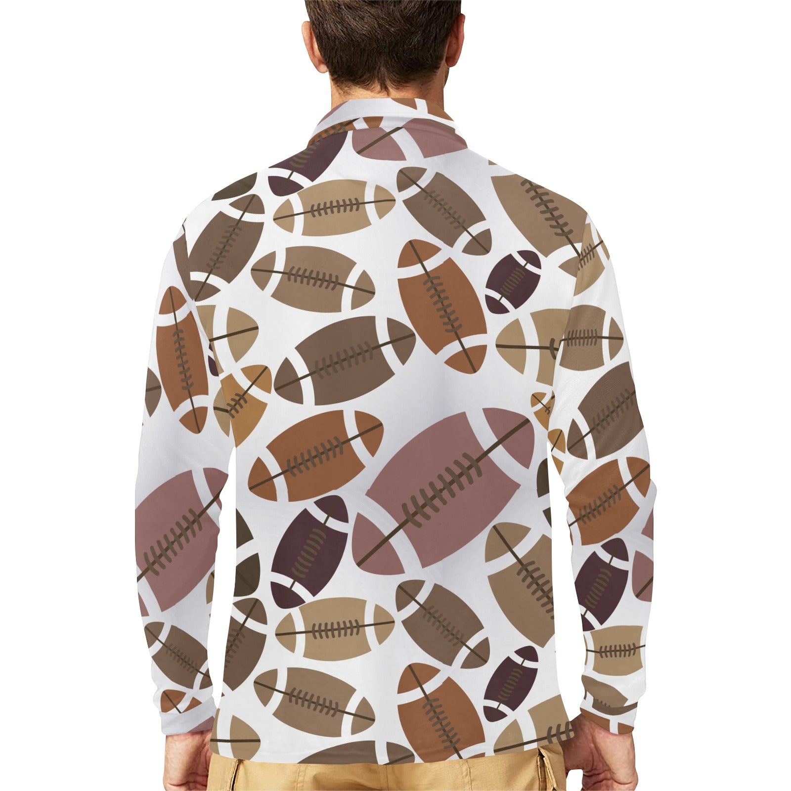 American football ball pattern Men's Long Sleeve Polo Shirt