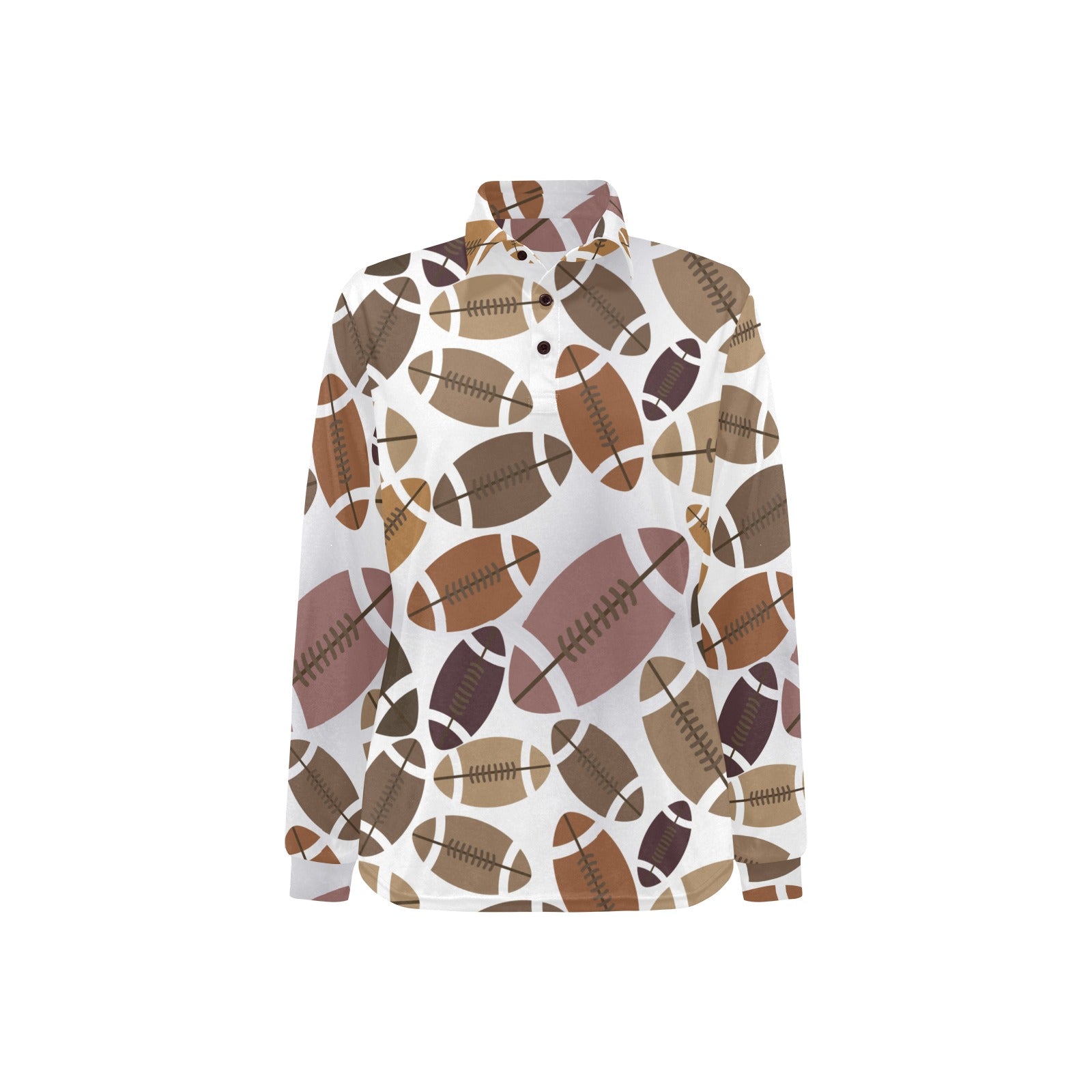 American football ball pattern Women's Long Sleeve Polo Shirt