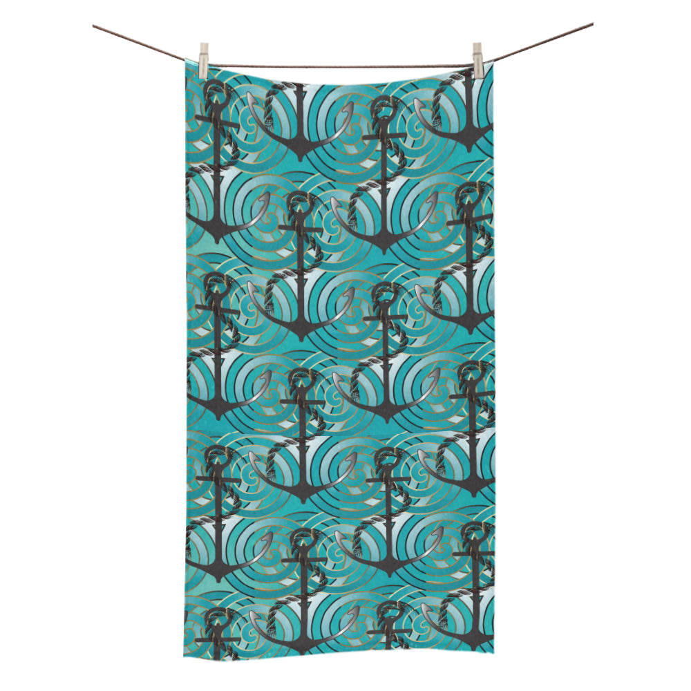 Anchor nautical green background Bath Towel 30"x56" is a uniqued design and limited item. It made to order, hand printed, and sewn with love in our factory.