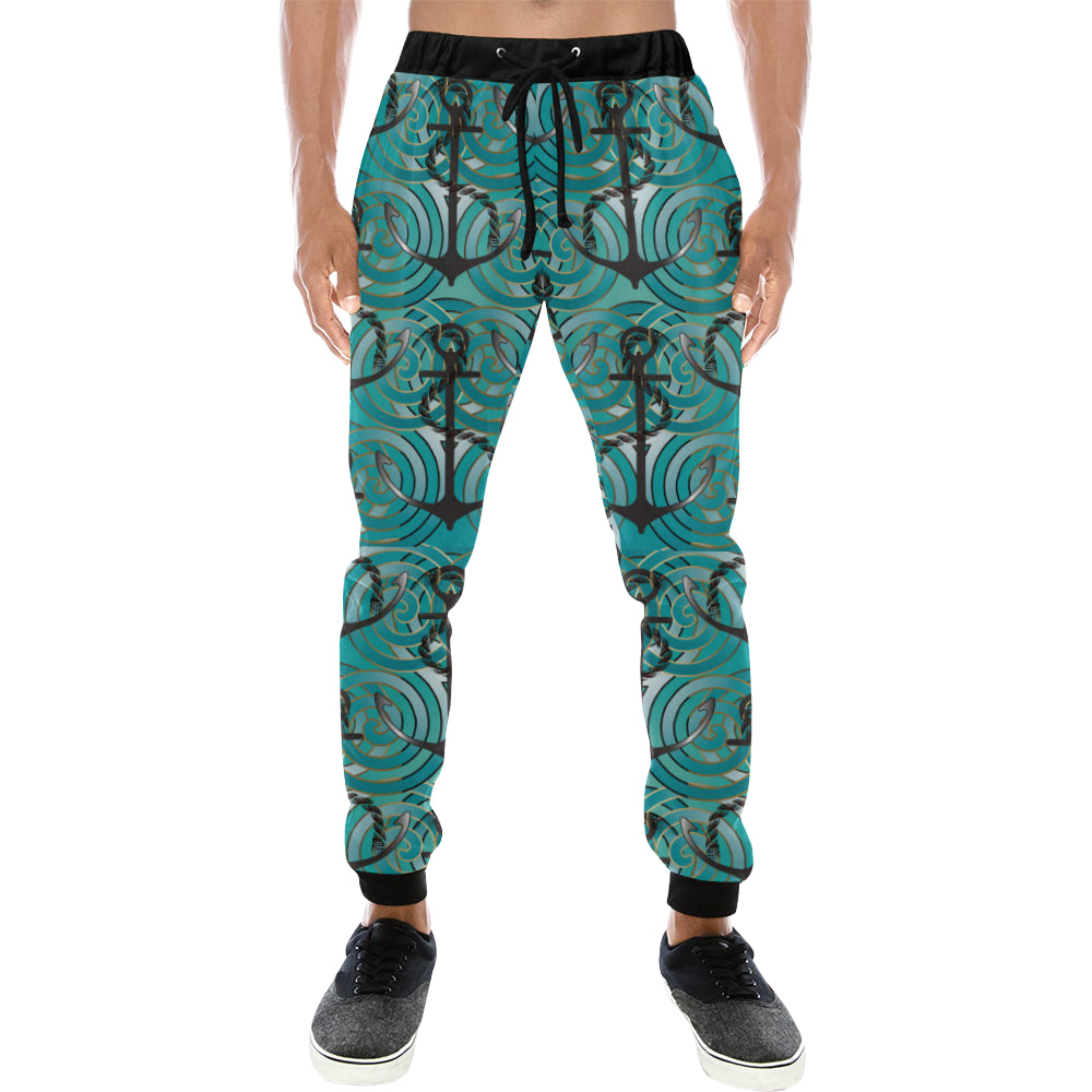 Anchor nautical green background Unisex Casual Sweatpants