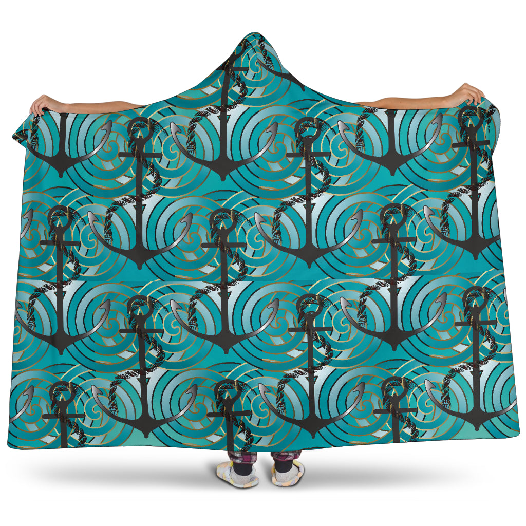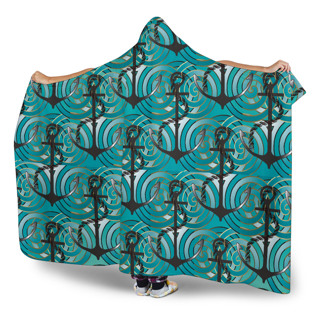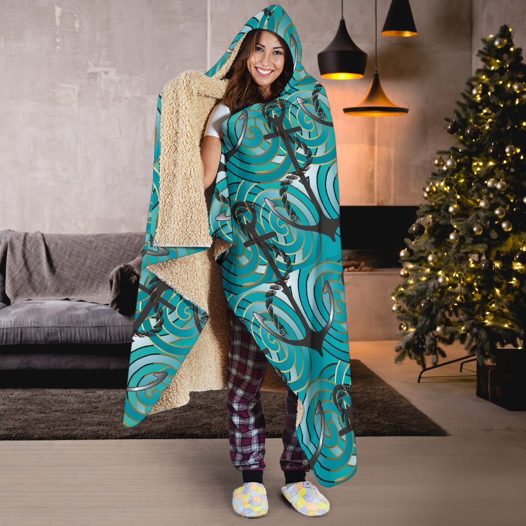 Anchor nautical green background Hooded Blanket are custom-made-to-order and handcrafted to the highest quality standards.