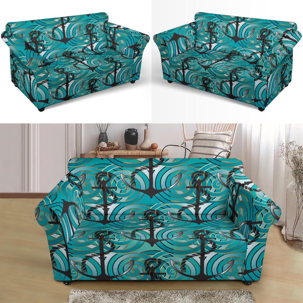 Anchor nautical green background Loveseat Sofa Slipcover is a uniqued design and limited item. It made to order, hand printed, and sewn with love in our factory.
