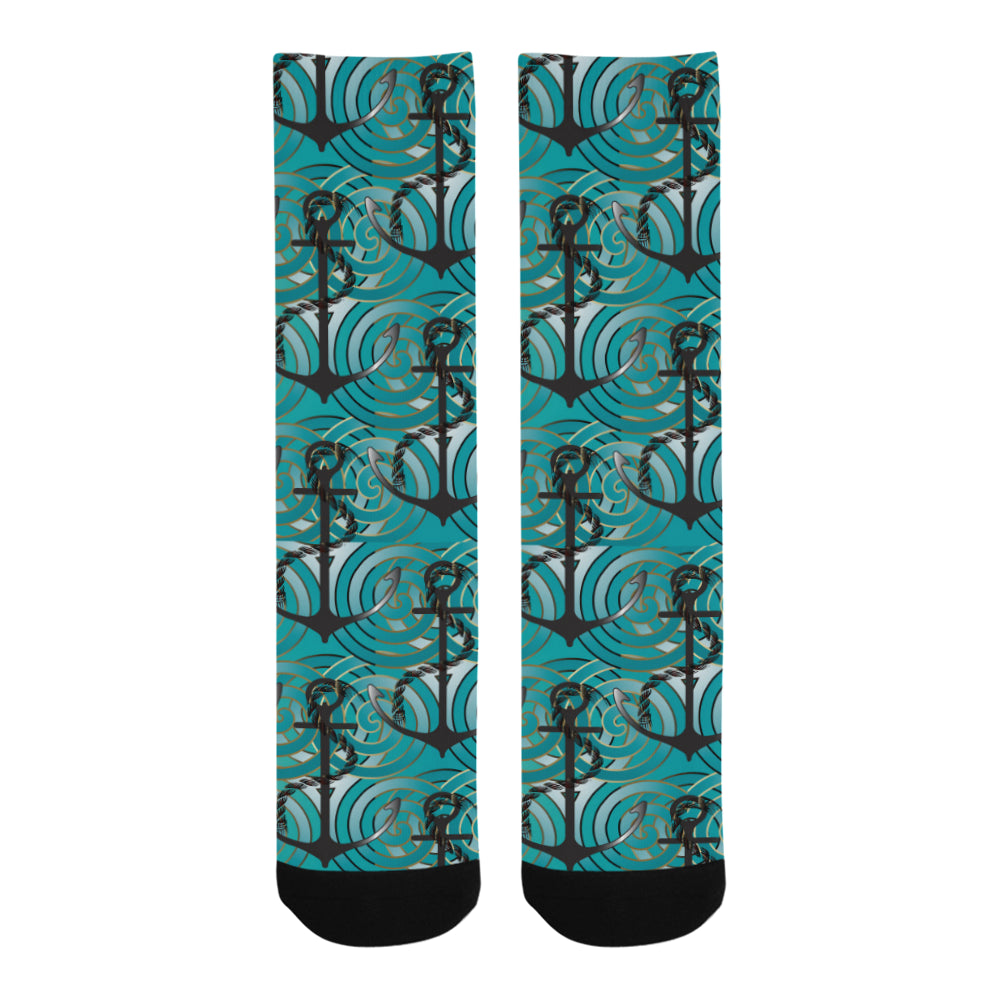 Anchor nautical green background Crew Socks are uniqued design and limited item. It made to order, hand printed, and sewn with love in our factory.