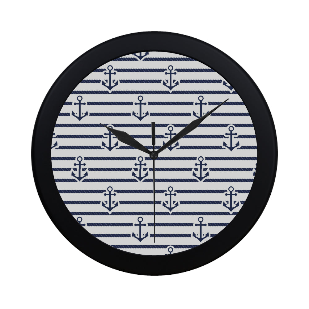 Anchor rope nautical pattern Elegant Black Wall Clock